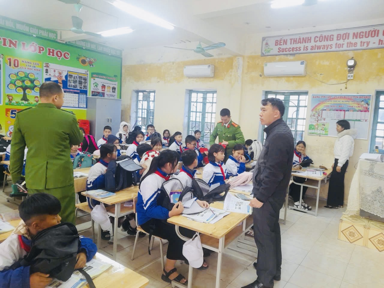Tại buổi tuyên truyền sau kiểm tra, đồng chí Đại úy Nguyễn Văn Linh Phó trưởng Công an xã đã phổ biến một số nội dung quy định pháp luật trọng tâm liên quan đến tàng trữ, mang theo vũ khí, công cụ hỗ trợ trái phép; các hành vi mang hung khí vào trường học có thể bị xử phạt hành chính từ 30-40 triệu đồng theo Nghị định 282/2025/NĐ-CP, áp dụng đối với các hành vi tàng trữ, sử dụng trái phép, nhưng chưa đến mức truy cứu trách nhiệm hình sự. Đồng thời, lực lượng Công an quán triệt khẩu hiệu ngành “Vì nhân dân phục vụ”, gắn với phong trào “Xây dựng trường học an toàn – Kỷ cương – Tôn trọng – Trách nhiệm”; đề nghị học sinh nêu cao ý thức phòng ngừa, tuyệt đối không mang theo vật dụng nguy hiểm, góp phần bảo đảm an ninh, an toàn trường học.