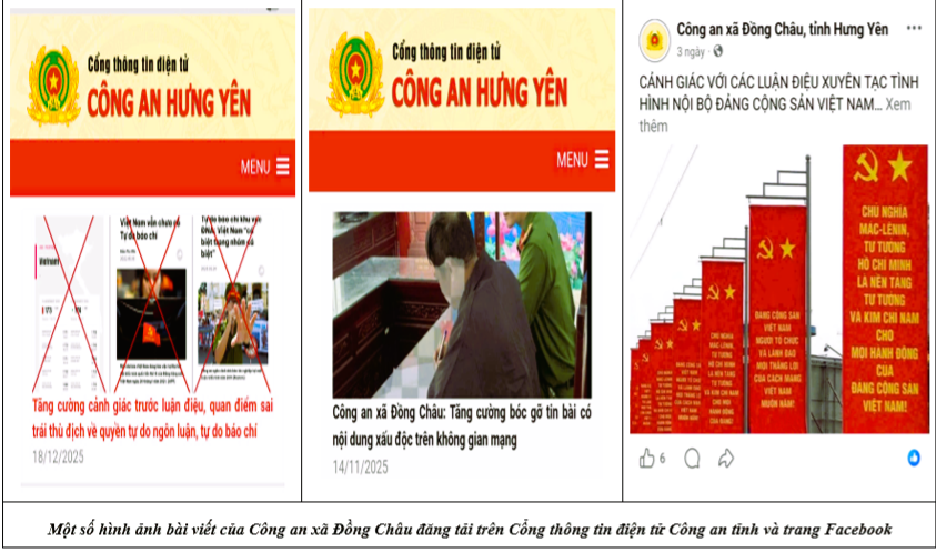 Dưới sự lãnh đạo đúng đắn của Đảng, sự vào cuộc đồng bộ của cả hệ thống chính trị và sự đồng thuận của Nhân dân, việc nhận diện và đấu tranh với các quan điểm sai trái, thù địch trên không gian mạng hiện nay là một bộ phận quan trọng trong công cuộc bảo vệ nền tảng tư tưởng của Đảng. Đây là nhiệm vụ mang tính chiến lược, thường xuyên, lâu dài, là trách nhiệm của mỗi cán bộ, đảng viên và Nhân dân, trong đó lực lượng Công an giữ vai trò nòng cốt. Với tinh thần cảnh giác cao độ trước các thông tin xấu độc, bịa đặt, xuyên tạc, Công an xã Đồng Châu quyết tâm cùng cấp ủy, chính quyền và Nhân dân làm thất bại mọi âm mưu chống phá, góp phần bảo vệ vững chắc Tổ quốc Việt Nam xã hội chủ nghĩa, xây dựng đất nước ngày càng phồn vinh, hạnh phúc, thực hiện thắng lợi các nhiệm vụ chính trị ngay từ cơ sở.