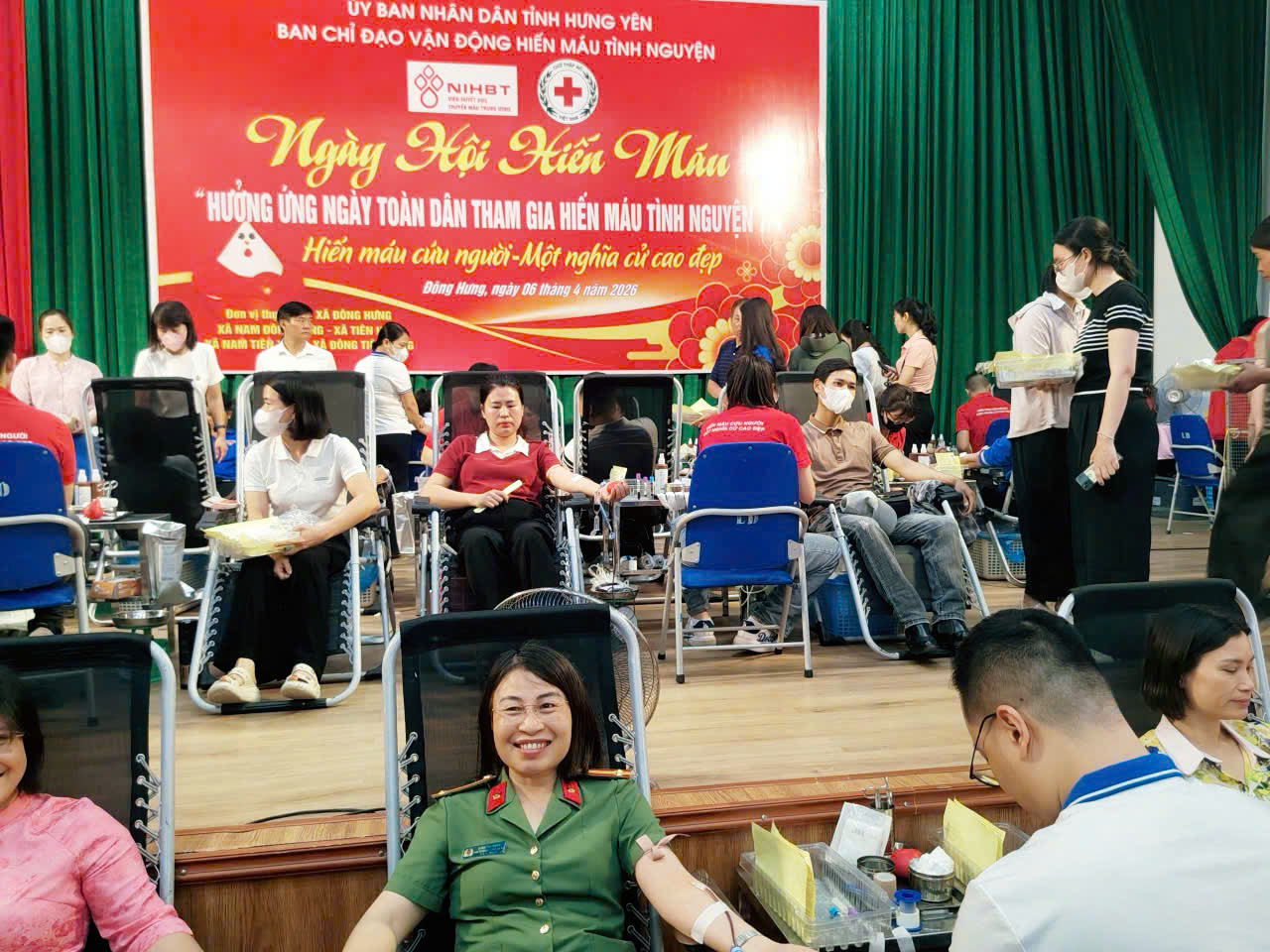 Sáng ngày 06/4/2026, tại Nhà văn hoá xã Đông Hưng, tỉnh Hưng Yên; Ngày hội hiến máu tình nguyện đã diễn ra trong không khí sôi nổi, ấm áp nghĩa tình thu hút đông đảo cán bộ, chiến sĩ Công an xã, lực lượng tham gia bảo vệ ANTT ở cơ sở và Nhân dân địa phương tham gia.
