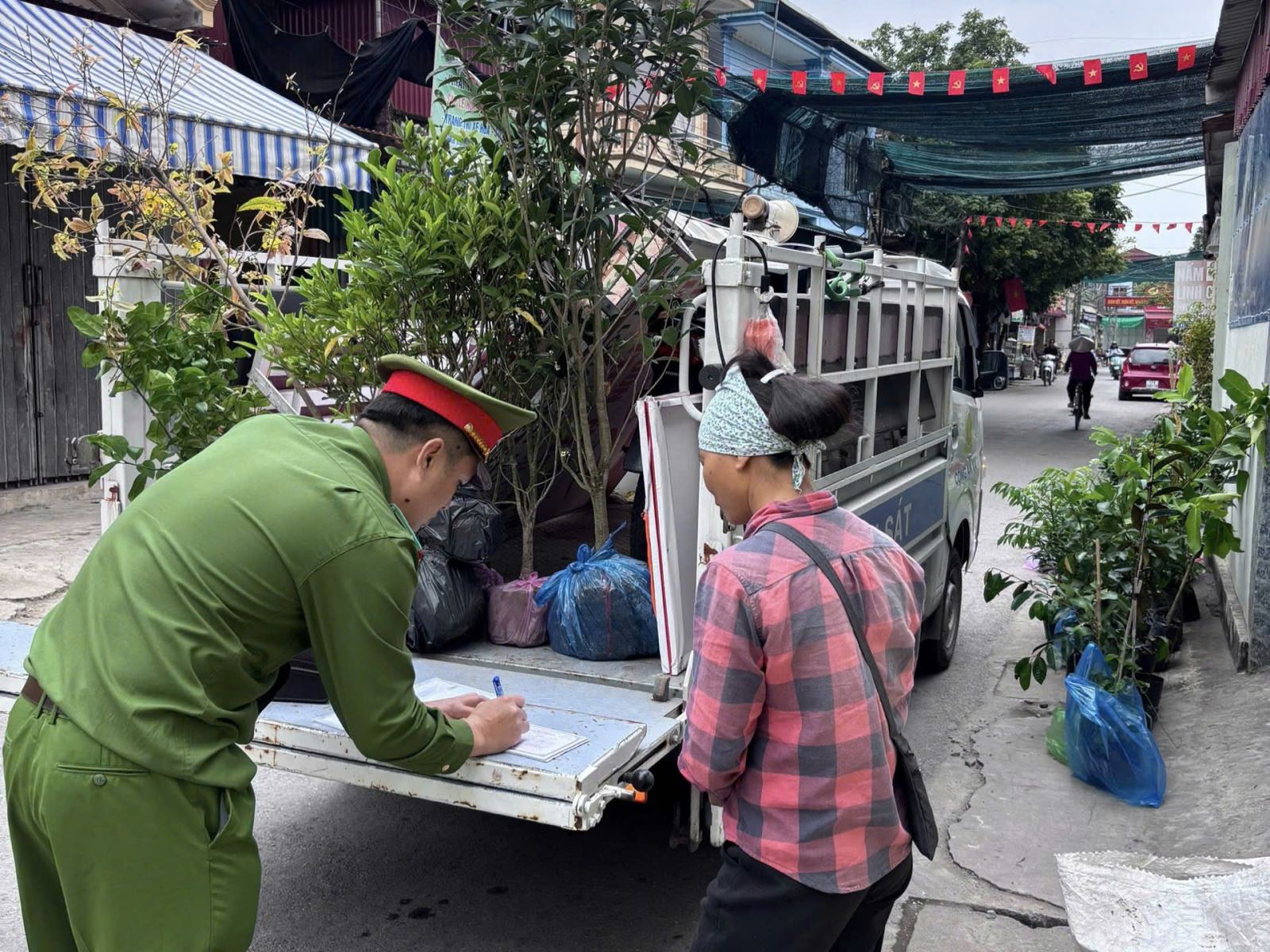 Không chỉ dừng lại ở việc kiểm tra, xử lý vi phạm, Công an xã Đông Tiên Hưng còn chú trọng công tác “đi từng ngõ, gõ từng nhà” để tuyên truyền, vận động người dân. Cán bộ Công an trực tiếp đến các hộ kinh doanh dọc tuyến đường, hướng dẫn cụ thể về việc không lấn chiếm vỉa hè, không đặt vật cản gây mất an toàn giao thông. Nhiều hộ dân sau khi được tuyên truyền đã chủ động sắp xếp lại quầy hàng gọn gàng, đảm bảo mỹ quan và an toàn.
