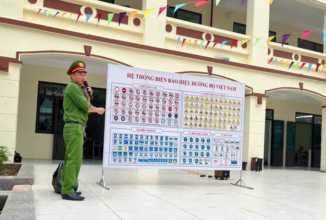 Ngay từ khi mới thành lập Công an xã đã chủ động phối hợp với các trường học Tiểu học và THCS đóng trên địa bàn xã tổ chức ký cam kết và trực tiếp thực hiện 04 buổi tuyên truyền với gần 160 giáo viên và trên 2.500 học sinh về cách nhận biết biển báo giao thông, nguyên tắc tham gia giao thông, kỹ năng lái xe và cách xử lý một số tình huống nhằm nâng cao ý thức trách nhiệm của mỗi học sinh về việc chấp hành luật lệ ATGT.
