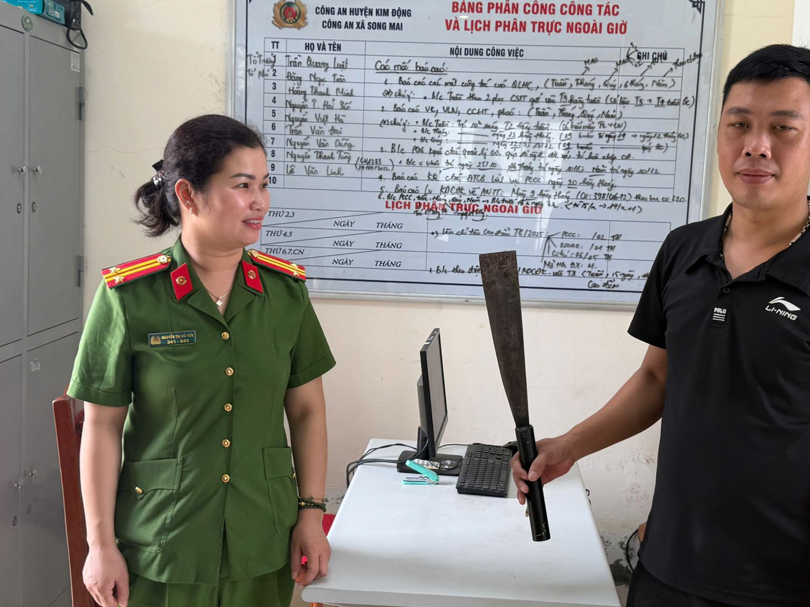 Công dân Nguyễn Đức Trường đến giao nộp công cụ hỗ trợ tại Công an xã