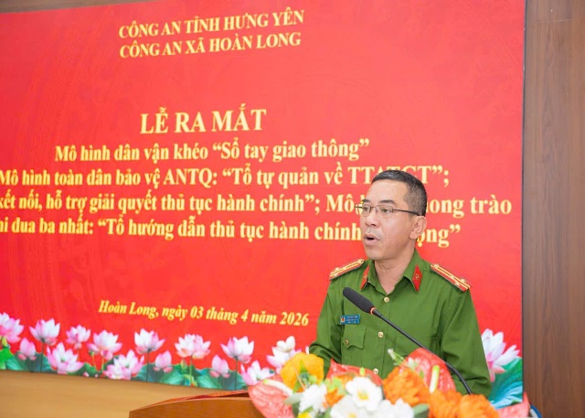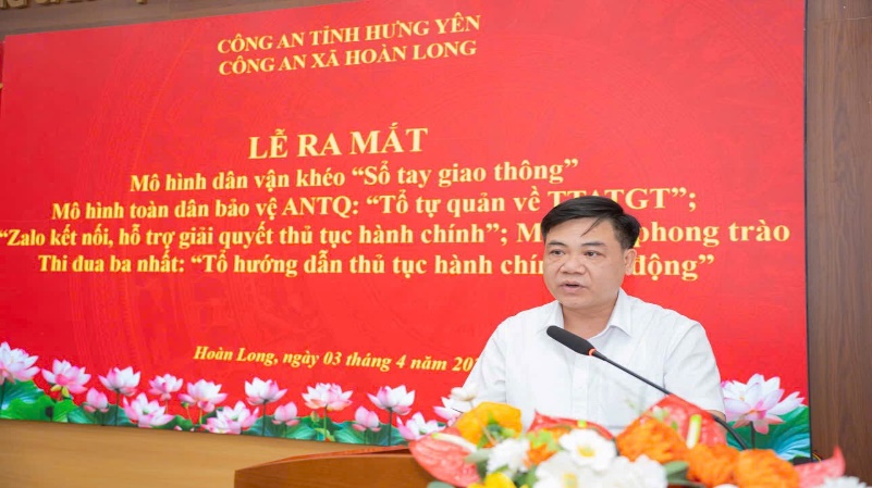 Phát biểu tại buổi lễ, đồng chí Nguyễn Hồng Quân – Phó Chủ tịch UBND xã Hoàn Long ghi nhận, biểu dương tinh thần chủ động, sáng tạo, dám nghĩ, dám làm của lực lượng Công an xã trong việc tham mưu, xây dựng và triển khai mô hình mới, thiết thực, sát thực tiễn địa phương. Đồng chí nhấn mạnh: Bốn mô hình không chỉ phục vụ hiệu quả công tác bảo đảm an ninh, trật tự mà còn góp phần quan trọng trong tiến trình chuyển đổi số của xã. Đây là bước đi cụ thể, thể hiện quyết tâm của cấp ủy, chính quyền và lực lượng Công an trong xây dựng chính quyền số, công dân số, vì Nhân dân phục vụ”