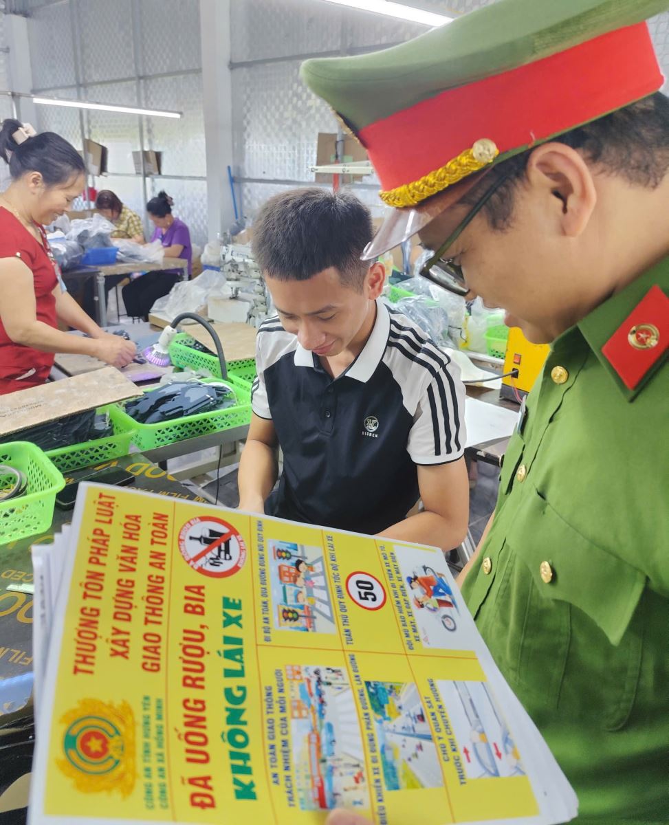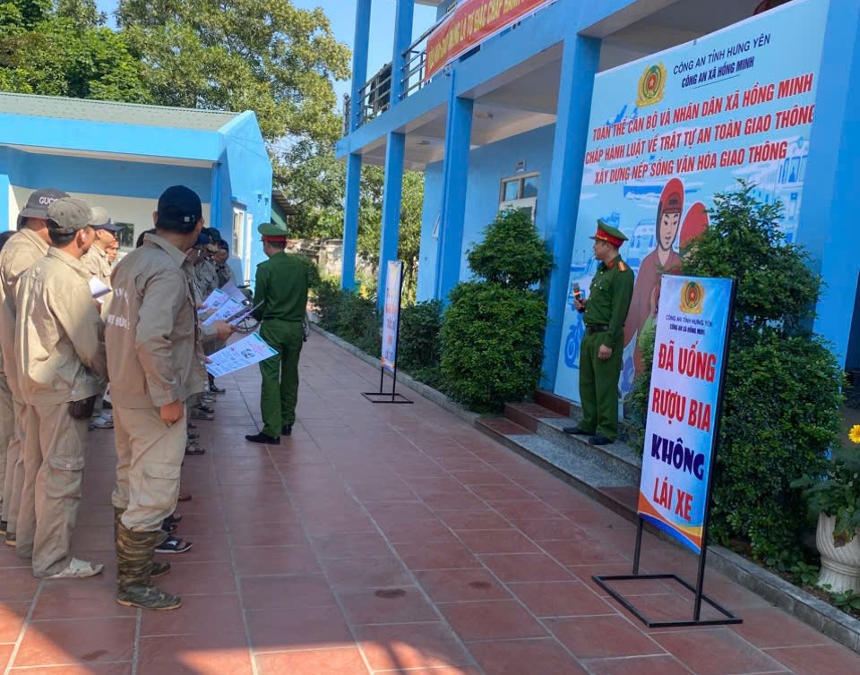 Song song với công tác tuyên truyền, Công an xã Hồng Minh chủ động phối hợp với Phòng Cảnh sát giao thông Công an tỉnh Hưng Yên tổ chức kiểm tra, tuyên truyền, ký cam kết đối với các chủ bến bãi, cơ sở tập kết vật liệu xây dựng trên địa bàn; kiên quyết không để các loại phương tiện vi phạm như xe công nông, xe tự chế 3–4 bánh, xe cơi nới thành thùng, xe quá khổ, quá tải tham gia giao thông, góp phần phòng ngừa nguy cơ tai nạn giao thông từ sớm, từ xa. Đồng thời, Công an xã Hồng Minh đã bố trí lực lượng, phương tiện, trang thiết bị, trực tiếp tham gia phối hợp tuần tra, kiểm soát cùng lực lượng Cảnh sát giao thông; tập trung xử lý nghiêm các hành vi vi phạm là nguyên nhân trực tiếp gây mất TTATGT và trật tự công cộng, nhất là trong các khung giờ cao điểm và thời gian trước, trong, sau Tết.