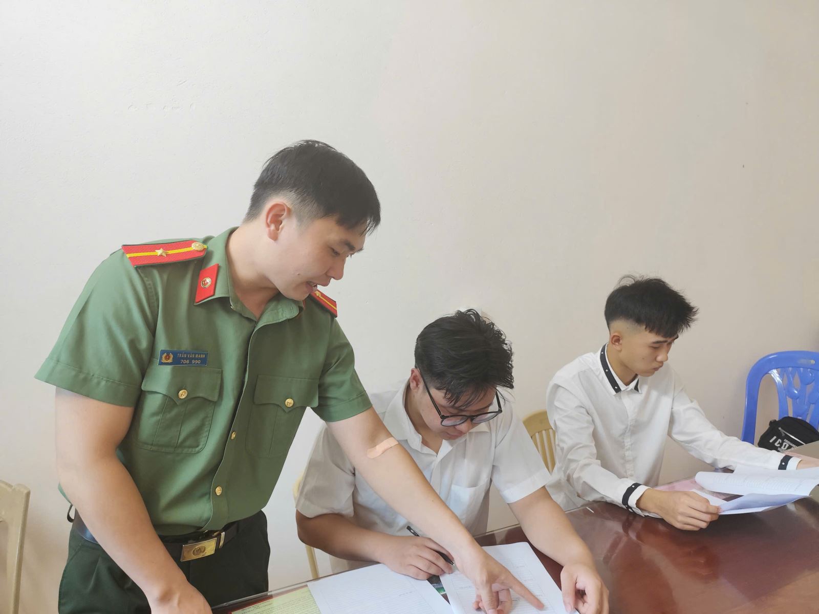 Cán bộ Công an xã hướng dẫn công dân viết tờ khai đăng ký thực hiện nghĩa vụ tham gia CAND