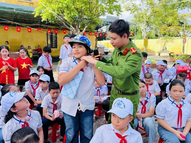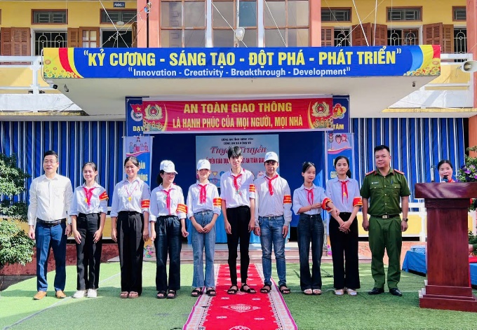 Công an xã Hồng Vũ tuyên truyền an toàn giao thông và xây dựng mô hình “Cổng trường an toàn giao thông” trên các trường THCS trên địa bàn