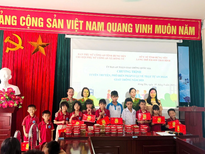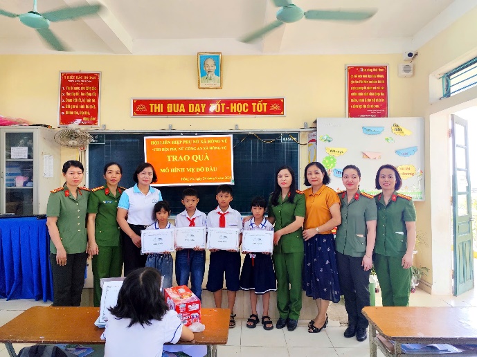 Chi hội phụ nữ Công an xã chăm lo động viên chia sẻ và đỡ đầu trẻ em có hoàn cảnh khó khăn của xã