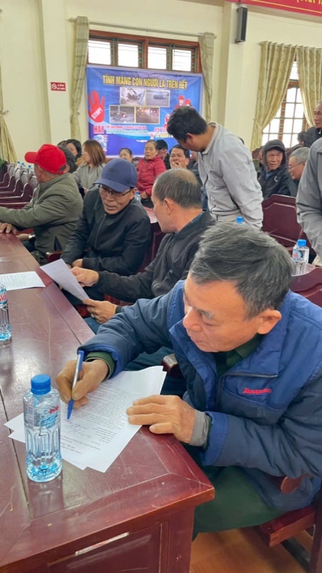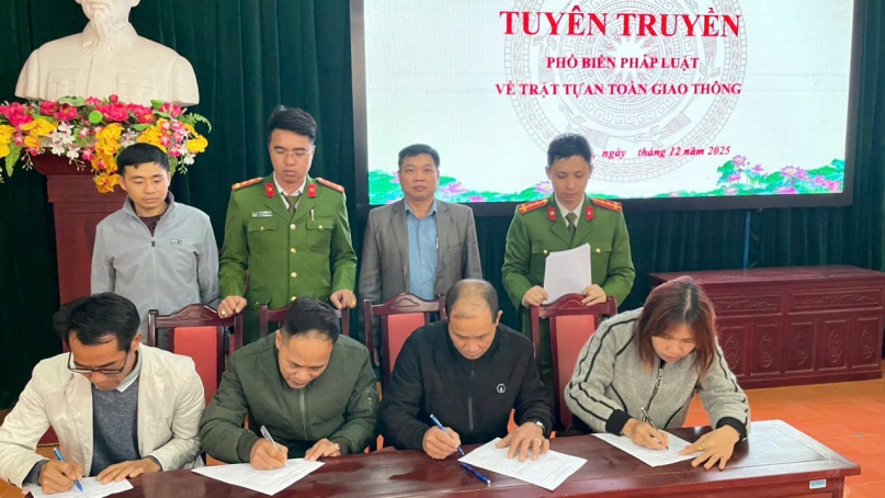 Sau khi được tuyên truyền, phổ biến pháp luật về an toàn giao thông các đại biểu đại diện các Tổ, thôn, xóm và đại diện các hộ kinh doanh đã Ký cam kết thực hiện các nội dung: Chấp hành nghiêm các quy định, không tái phạm các hành vi lấn chiếm, gây cản trở giao thông; Tăng cường công tác giám sát, nhắc nhở và báo cáo kịp thời các trường hợp vi phạm trong phạm vi quản lý; Đối với lực lượng Công an xã thực hiện công tác tuần tra, kiểm tra và xử lý vi phạm một cách công bằng, minh bạch, không có vùng cấm.