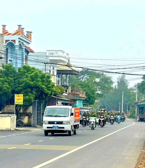 Công an xã Hồng Vũ tổ chức ra quân, diễu hành, biểu dương lực lượng trên các tuyến đường chính