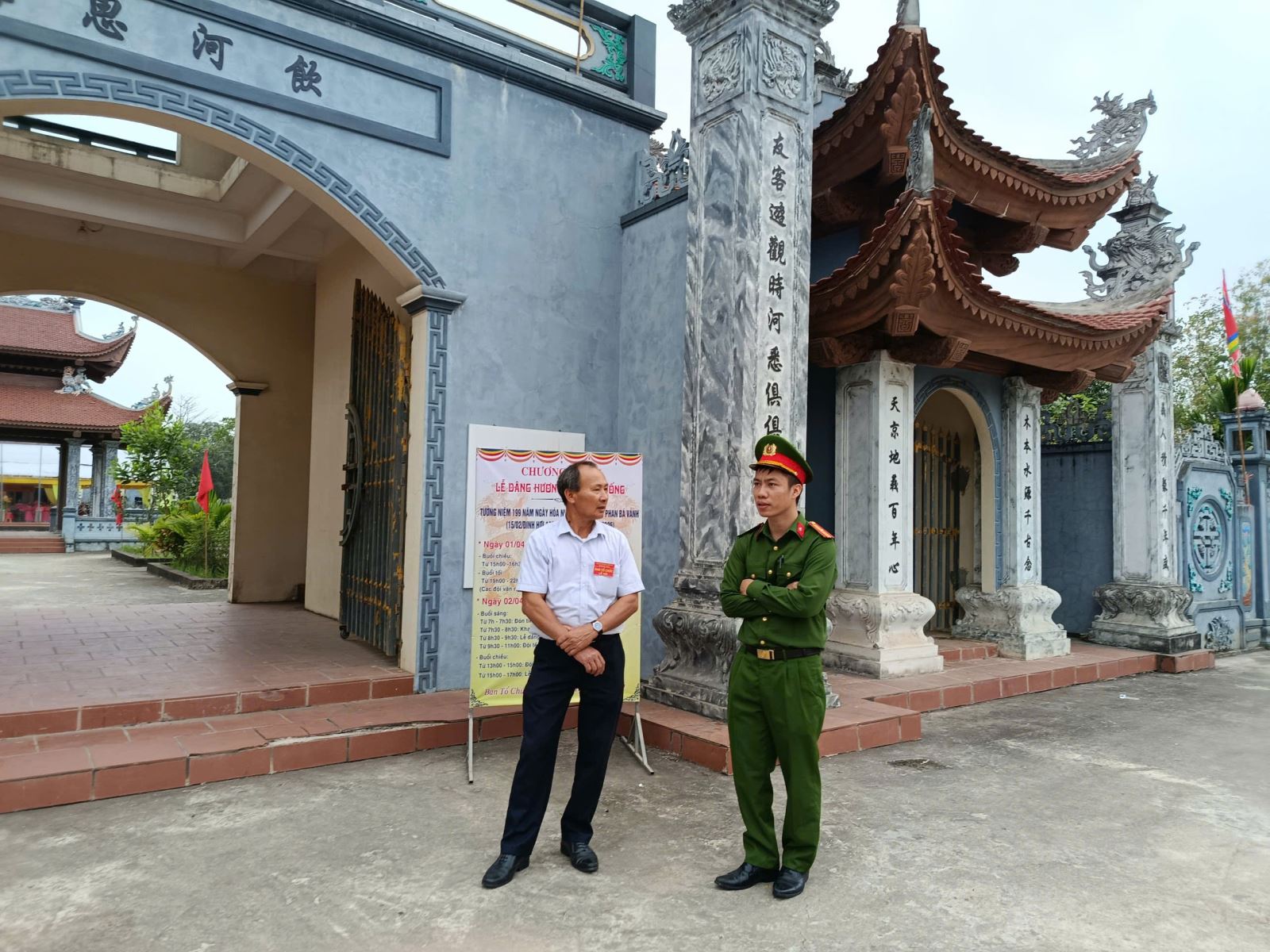 Đồng thời, lực lượng Công an xã phối hợp chặt chẽ với Ban quản lý di tích tham mưu chính quyền địa phương sắp xếp các bãi trông giữ xe, phân luồng giao thông, không để xảy ra tình trạng ùn tắc, vi phạm trật tự an toàn giao thông khu vực diễn ra lễ hội. Công tác phòng cháy chữa cháy tại các điểm lễ hội, nơi thờ tự cũng được đặc biệt chú trọng thông qua việc kiểm tra các thiết bị và tuyên truyền người dân cẩn trọng khi thắp hương, hóa vàng. Trong suốt thời gian diễn ra lễ hội, lực lượng Công an xã duy trì tuần tra, kiểm soát liên tục, kịp thời phát hiện, xử lý các tình huống phát sinh ngay từ cơ sở; đồng thời tăng cường tuyên truyền, nhắc nhở người dân nâng cao ý thức chấp hành pháp luật, thực hiện nếp sống văn minh nơi lễ hội.