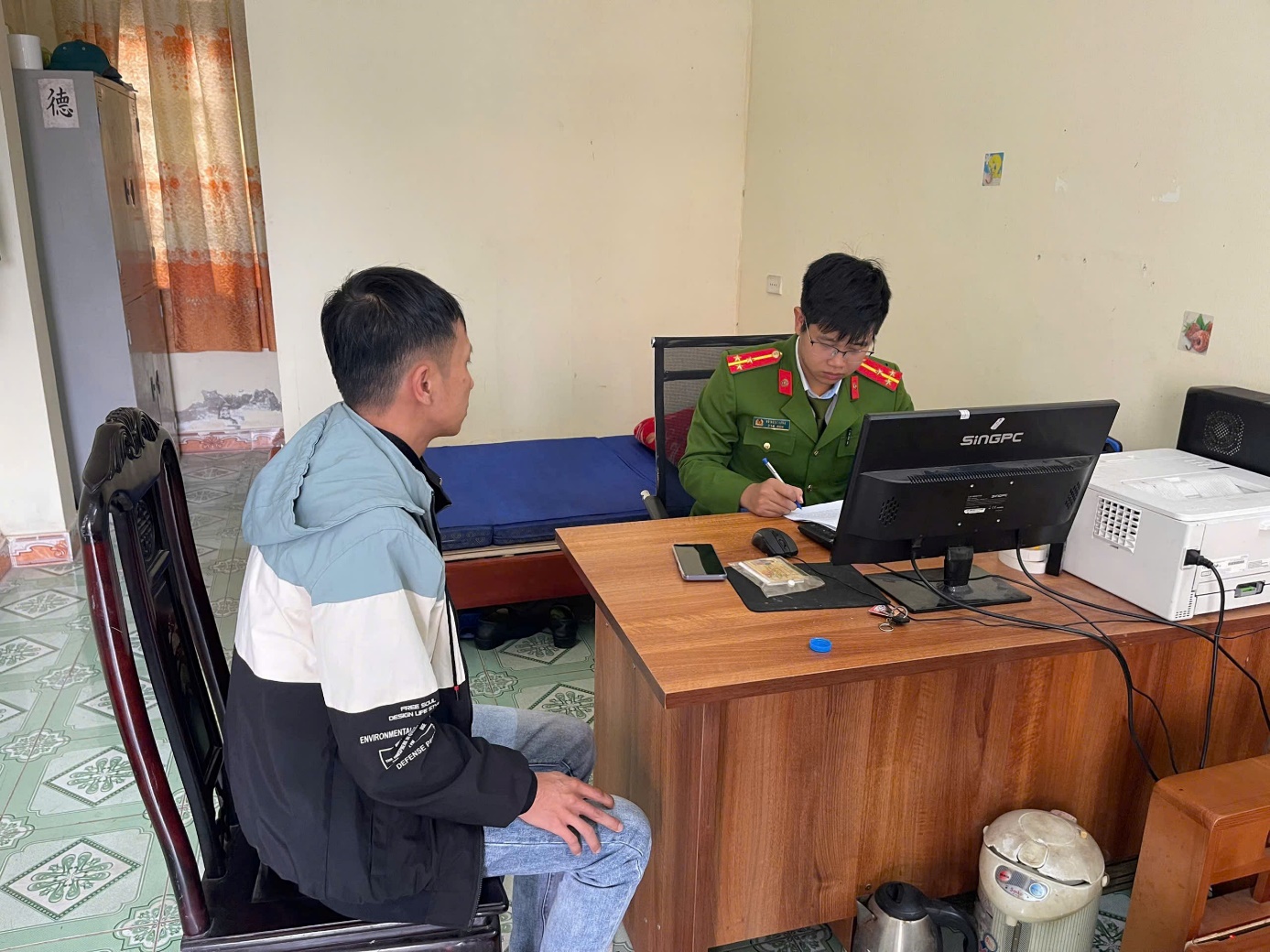 Công an xã Hưng Hà tiến hành lấy lời khai đối tượng Nguyễn Hoàng Chung