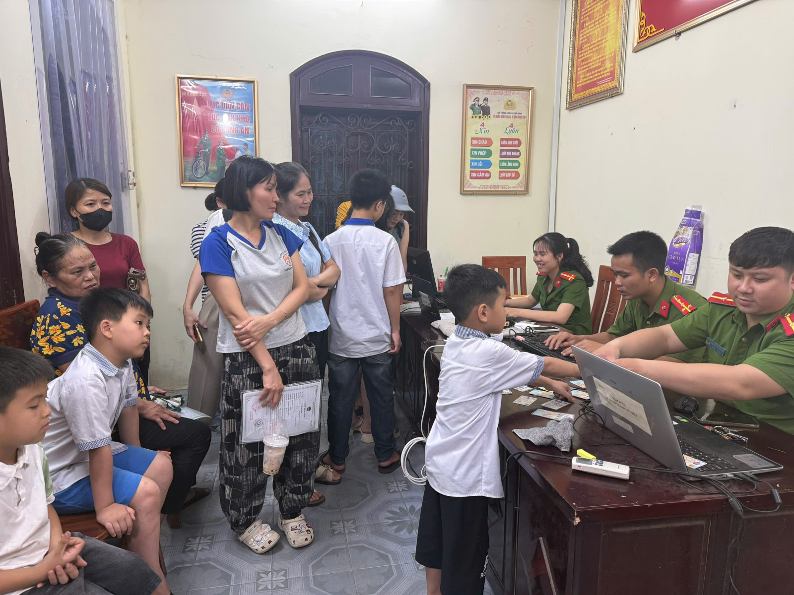 Công an xã Hưng Hà triển khai cao điểm thu nhận căn cước và tài khoản định danh điên tử cho học sinh từ 6 đến dưới 14 tuổi