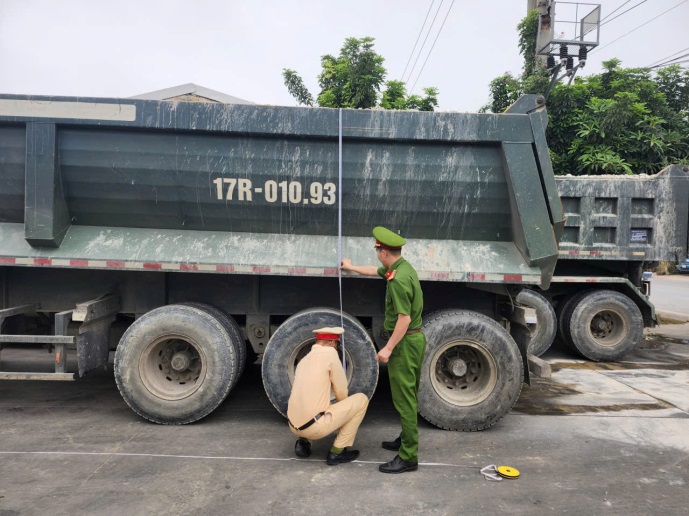 Lực lượng Công an kiểm tra kích thước thùng xe