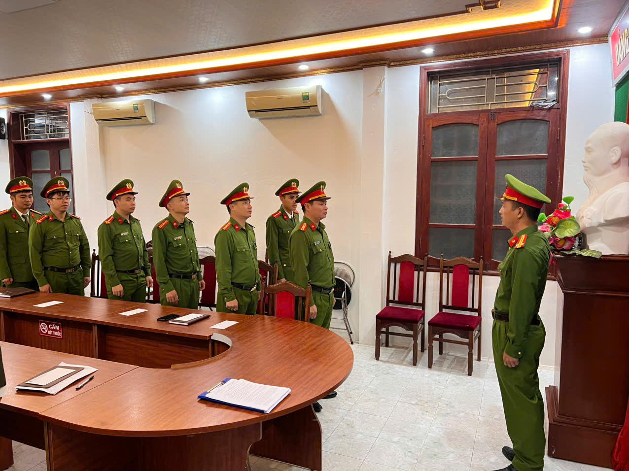 Cán bộ chiến sĩ Công an xã Hưng Phú nghiêm túc tổ chức thực hiện Buổi lễ Chào cờ thàng 11 năm 2025