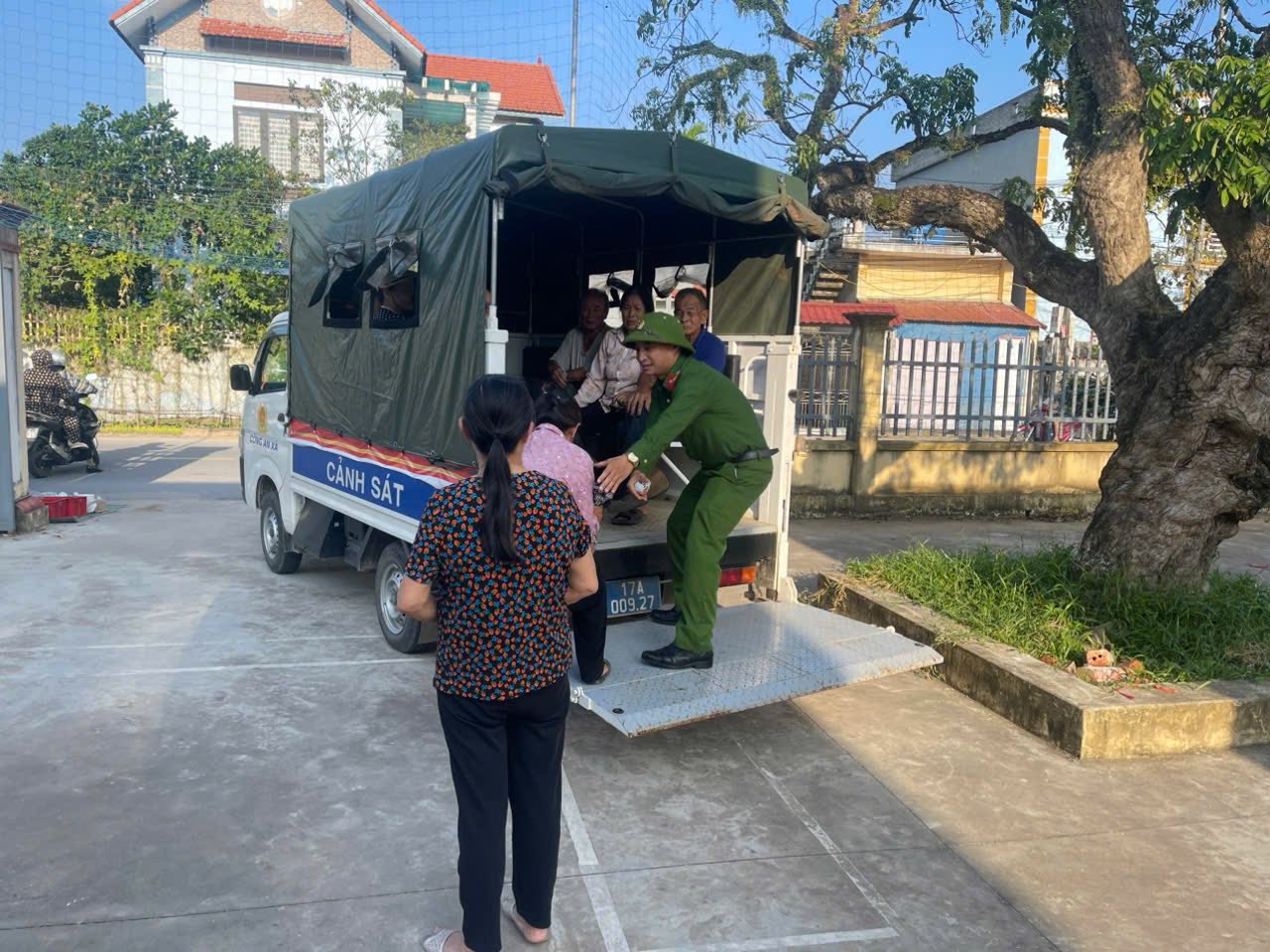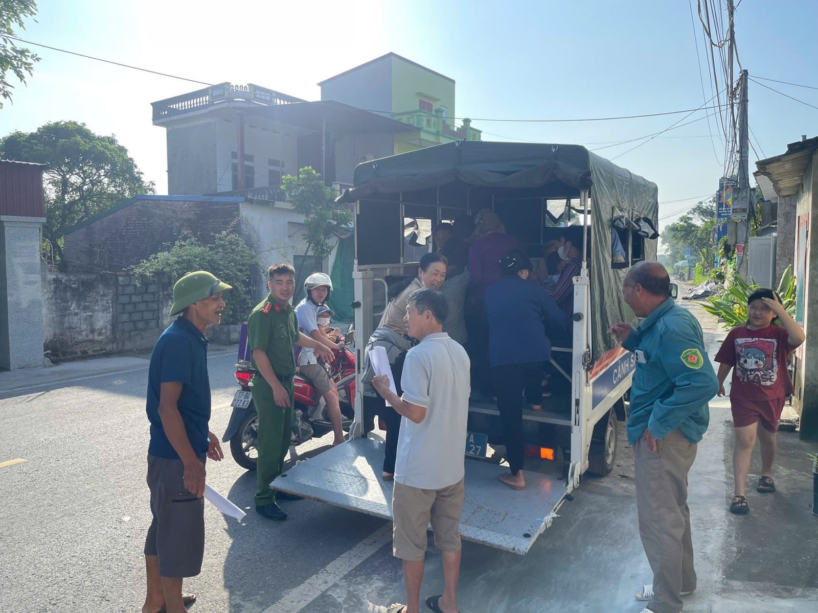 Cán bộ chiến sỹ Công an xã Lê Quý Đôn tổ chức đưa đón người dân đi làm tài khoản Định danh điện tử mức 2