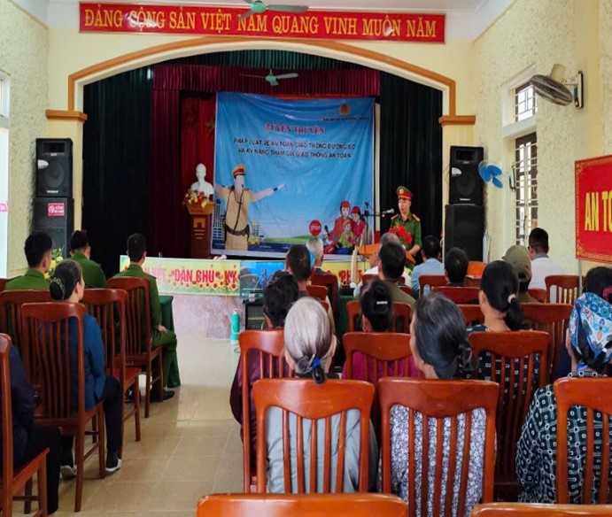 Công an xã tuyên truyền, phổ biến pháp luật về ATGT, giao lưu hỏi đáp kiến thức về Luật trật tự, an toàn giao thông