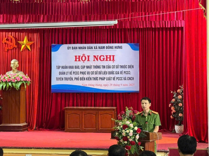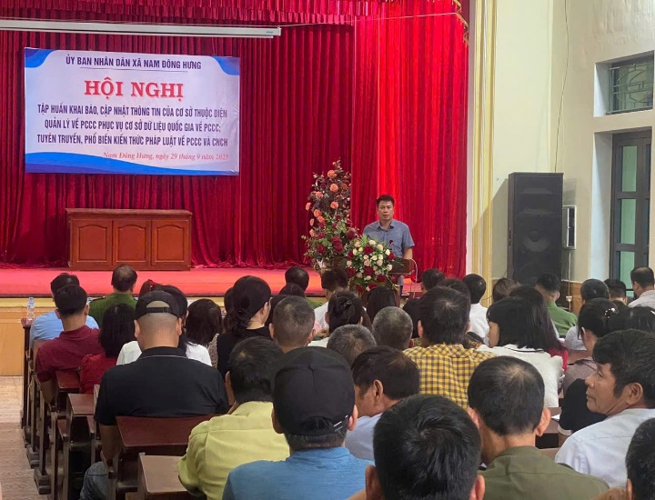 Thực hiện chỉ đạo của Công an tỉnh Hưng Yên về việc tăng cường công tác phòng cháy, chữa cháy và cứu nạn, cứu hộ (PCCC & CNCH), sáng ngày 29/09/2025, Công an xã Nam Đông Hưng đã tham mưu với UBND xã cùng các đơn vị chức năng tổ chức buổi tuyên truyền, phổ biến kiến thức PCCC và kỹ năng cứu nạn, cứu hộ cho cán bộ, nhân dân trên địa bàn. Buổi tuyên truyền có sự tham dự của đại diện Đảng ủy – HĐND – UBND xã, các ban, ngành, đoàn thể, ban công tác mặt trận các thôn, trưởng các dòng họ, cùng đông đảo người dân, các hộ kinh doanh, cơ sở sản xuất và đại diện các trường học trên địa bàn xã.