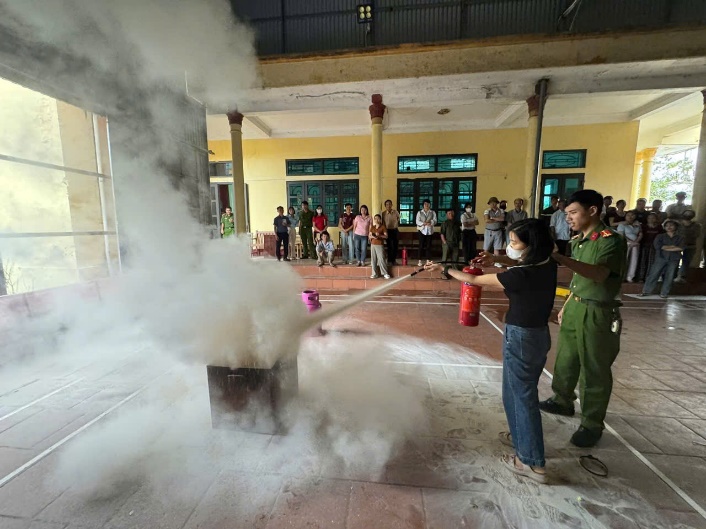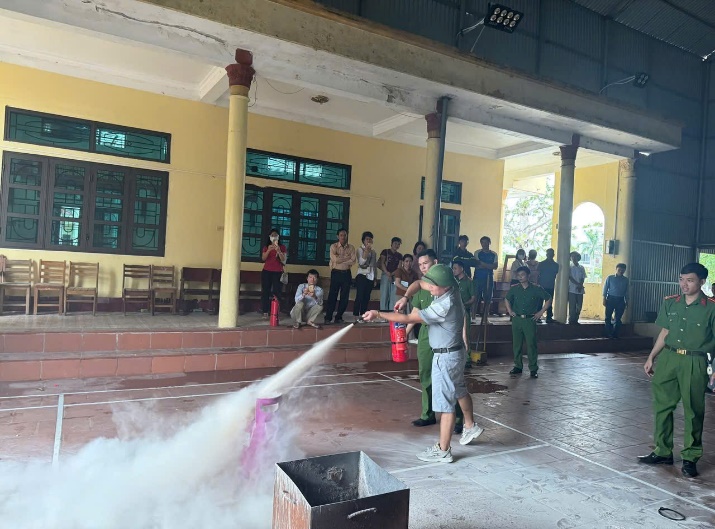 Ngoài phần lý thuyết, người dân còn được trực tiếp tham gia buổi diễn tập chữa cháy và cứu nạn giả định tại trụ sở UBND xã, tạo điều kiện nâng cao kỹ năng xử lý tình huống khi có sự cố xảy ra trong thực tế.