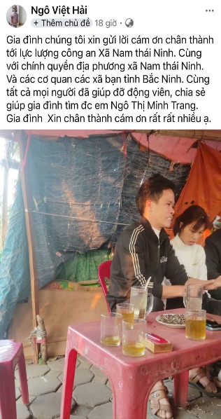 Quá trình tìm kiếm được thực hiện khẩn trương, liên tục, không quản ngày đêm. Đến 15 giờ ngày 10/01/2026, bằng sự nỗ lực, quyết tâm và phối hợp chặt chẽ giữa Công an xã Nam Thái Ninh với Công an xã Trung Kênh và Công an xã Cao Đức (tỉnh Bắc Ninh), chị Ngô Thị Minh Trang đã được tìm thấy an toàn và bàn giao cho gia đình trong niềm vui, xúc động vỡ òa.