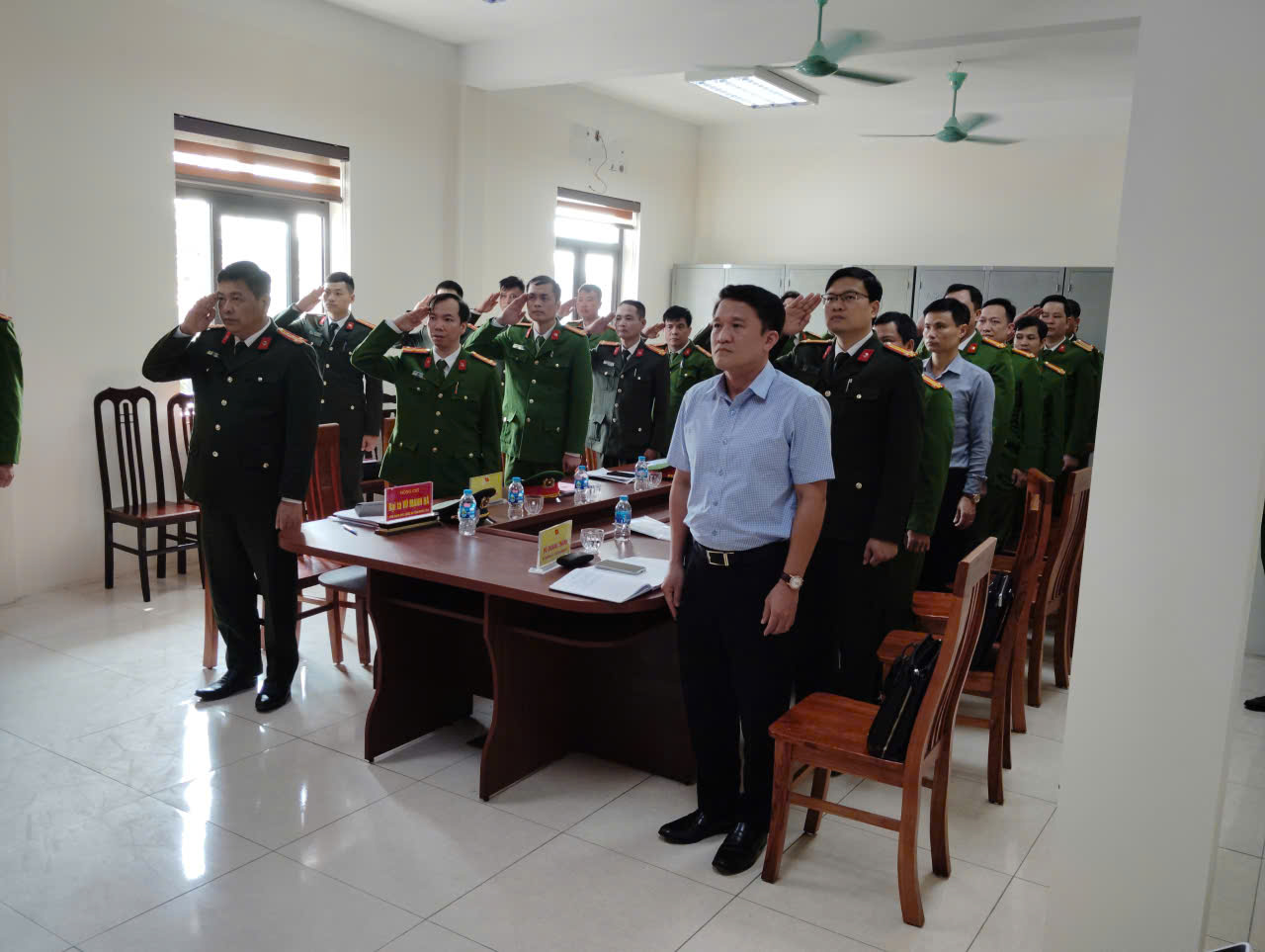 Các đồng chí lãnh đạo Công an tỉnh và lãnh đạo địa phương dự Hội nghị