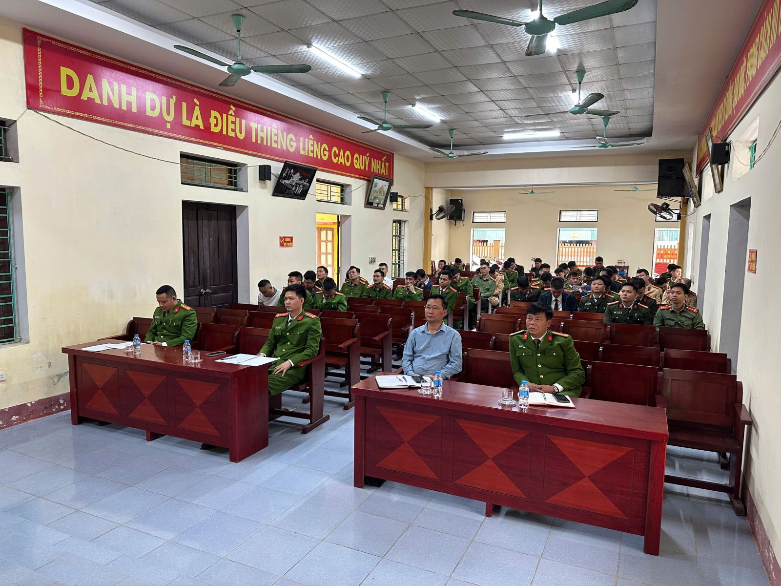 Tham dự hội nghị có đồng chí Lê Minh Tuấn – Phó bí thư Đảng ủy, Chủ tịch UBND xã, tập thể chỉ huy cán bộ chiến sĩ Công an xã Ngự Thiên và các đồng chí chỉ huy, cán bộ phòng nghiệp vụ Công an tỉnh được tăng cường đảm bảo ANTT tại các khu vực bỏ phiếu bầu cử trên địa bàn xã Ngự Thiên.