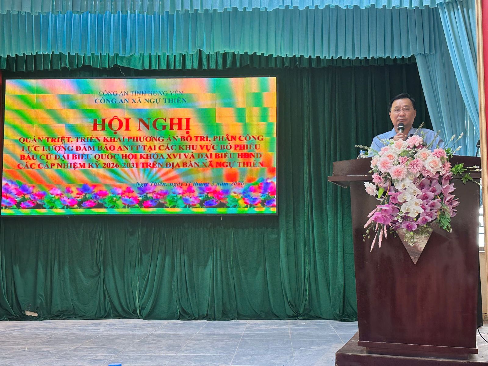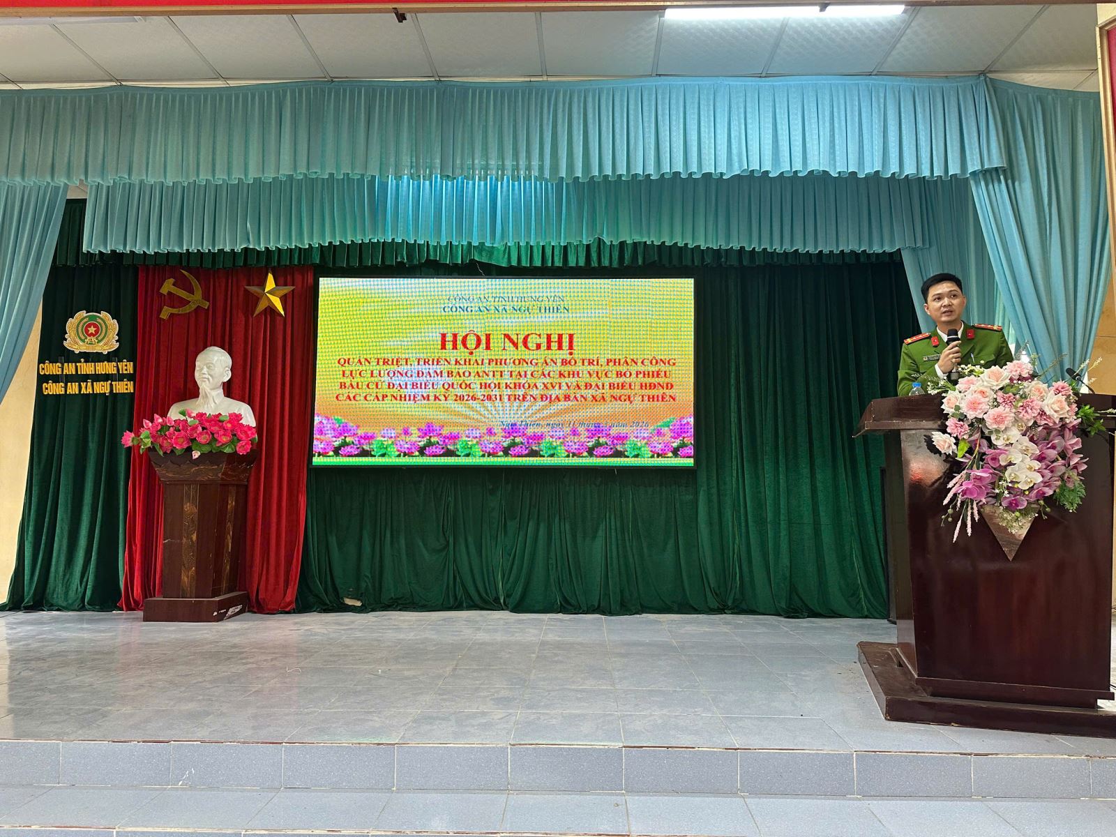 Nhằm chủ động bảo đảm tình hình an ninh trật tự phục vụ công tác bầu cử, sáng ngày 11/3/2026, Công an xã Ngự Thiên tổ chức hội nghị triển khai phương án bố trí, phân công lực lượng bảo đảm an ninh trật tự tại các khu vực bỏ phiếu bầu cử đại biểu Quốc hội khóa XVI và đại biểu Hội đồng nhân dân các cấp nhiệm kỳ 2026 – 2031 trên địa bàn xã.