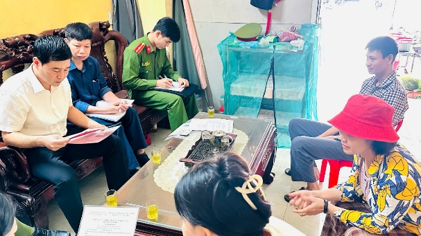 Công an xã Nguyễn Du phối hợp các bộ phận chức năng làm việc, kiểm tra hồ sơ đăng ký hộ kinh doanh trên địa bàn