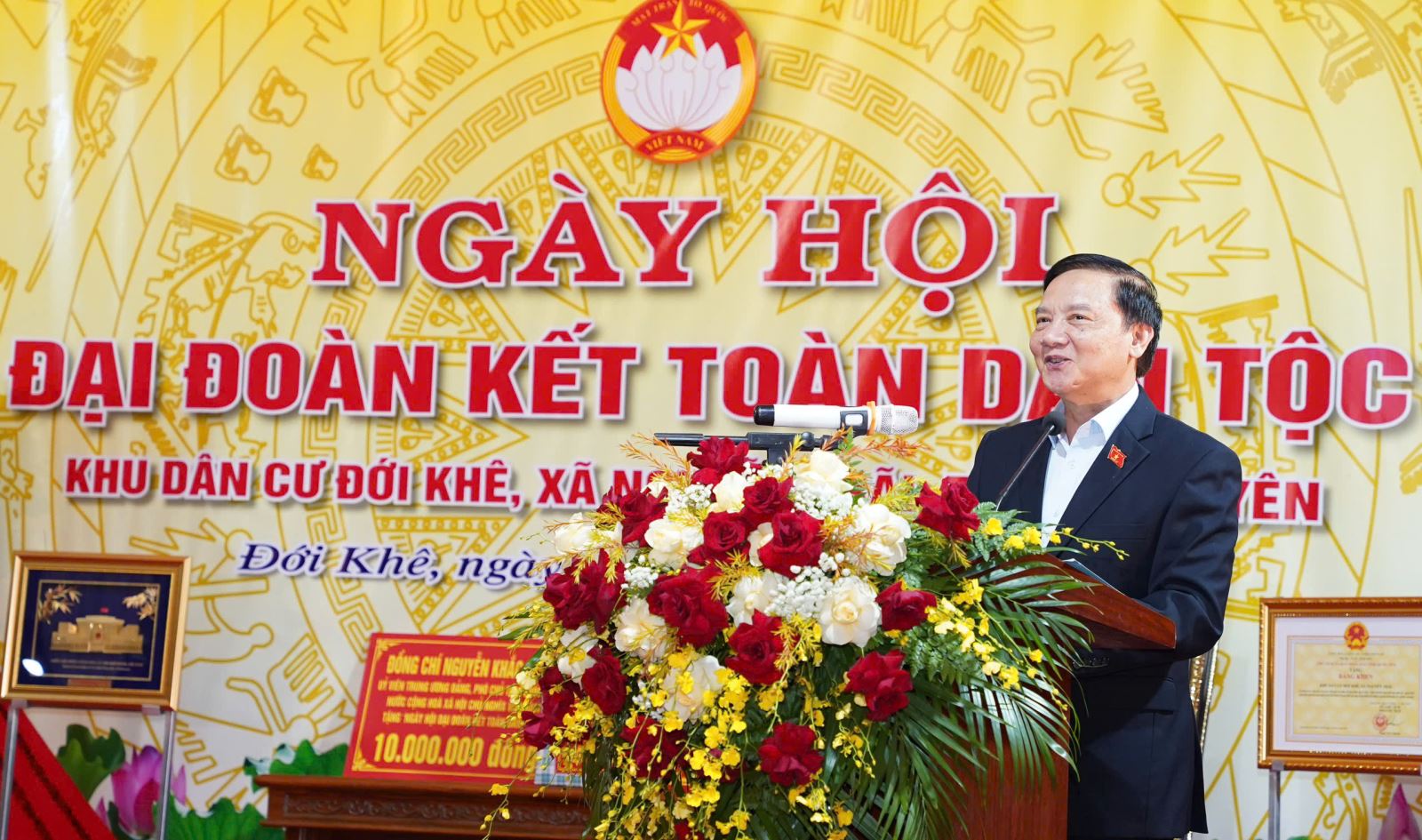 Đồng chí Nguyễn Khắc Định, Uỷ viên Ban chấp hành Trung ương Đảng- Phó Chủ tịch Quốc hội nước Cộng hoà XHCN Việt Nam phát biểu tại ngày hội Đại đoàn kết toàn tân tộc khu dân cư Đới Khê
