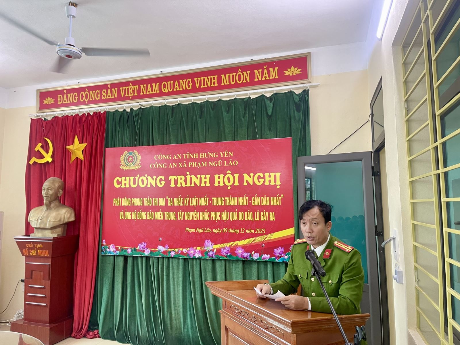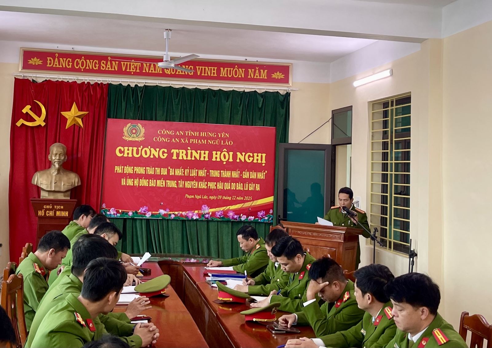 Thực hiện Kế hoạch của Giám đốc Công an tỉnh Hưng Yên về tổ chức phong trào thi đua “Ba nhất: Kỷ luật nhất – Trung thành nhất – Gần dân nhất”, ngày 09/12/2025, Công an xã Phạm Ngũ Lão đã long trọng tổ chức Hội nghị phát động phong trào thi đua “Ba nhất” trong toàn lực lượng.
