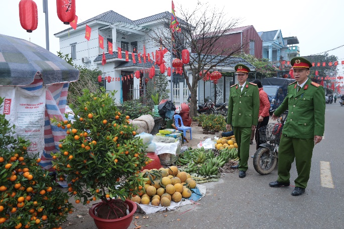 Công an xã tổ chức tuyên truyền, nhắc nhở, vận động người dân đảm bảo hành lang an toàn giao thông khu vực diễn ra Lễ hội