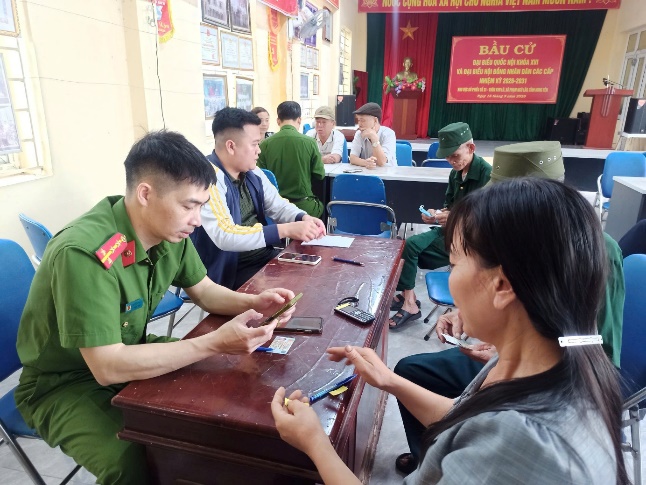 Cán bộ Công an xã Phạm Ngũ Lão hỗ trợ nhân dân tích hợp tài khoản an sinh xã hội