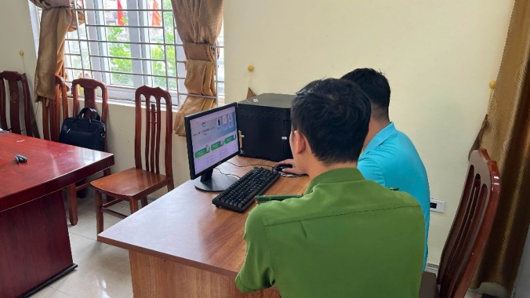 Công an xã Phụ Dực hướng dẫn chủ cơ sở lưu trú sử dụng phần mềm ASM