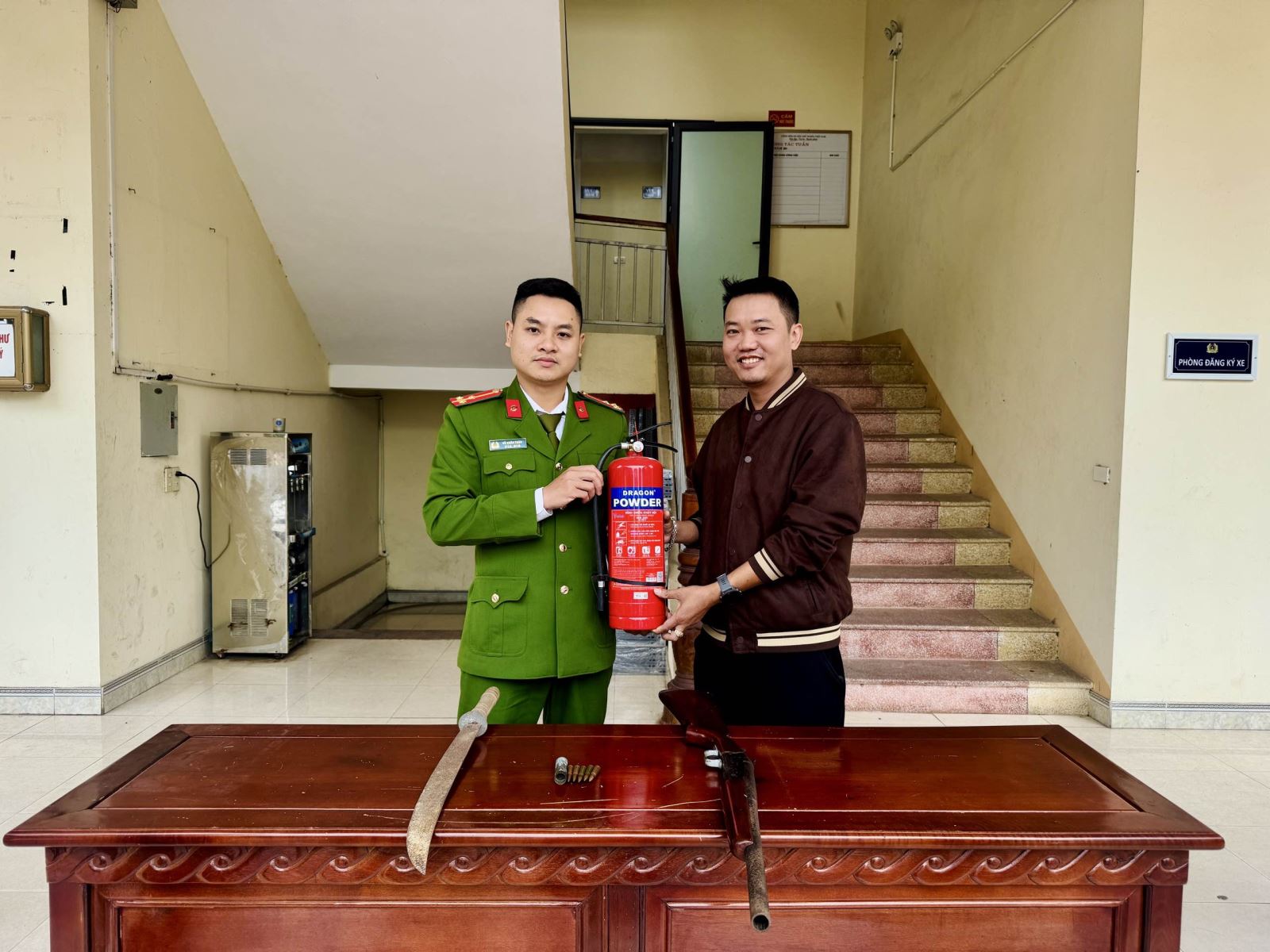 Góp phần lan tỏa phong trào “Nhà tôi có bình chữa cháy”, Công an xã Phụ Dực đã trao tặng bình chữa cháy nhằm khích lệ người dân khi giao nộp vũ khí, vật liệu nổ