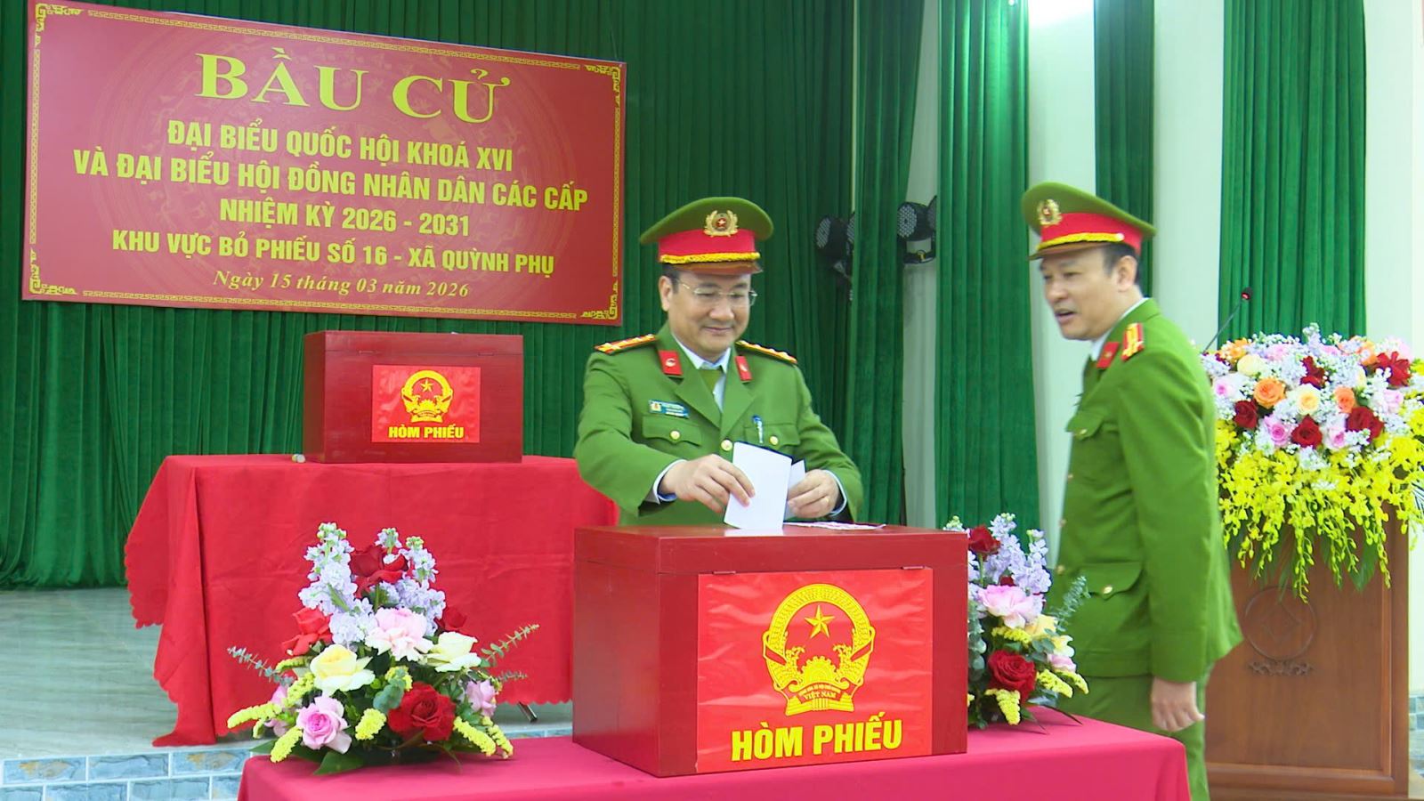 Công an xã Quỳnh Phụ bảo đảm ANTT khu vực bỏ phiếu và tham gia bỏ phiếu bầu cử đại biểu Quốc hội khóa XVI và HĐND các cấp nhiệm kỳ 2026 – 2031