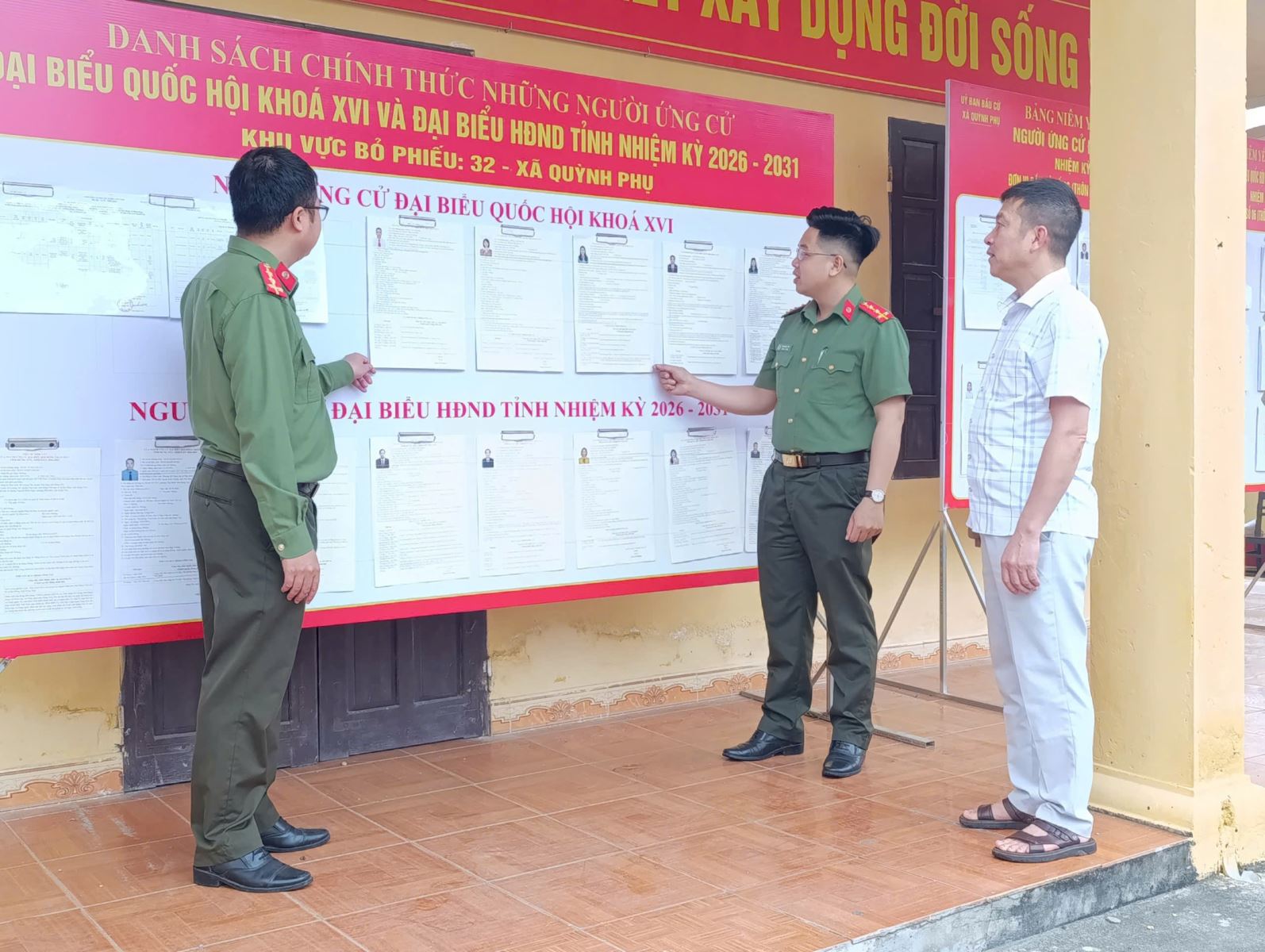 Công an xã Quỳnh Phụ kiểm tra công tác bảo đảm ANTT tại các khu vực bỏ phiếu