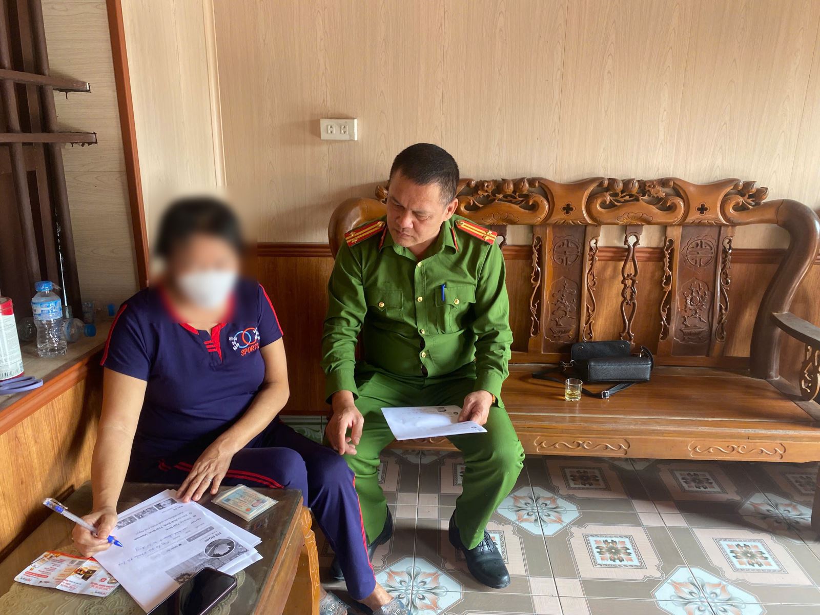Công an xã Tân Tiến làm việc với công dân đăng tải bình luận không đúng chuẩn mực trên không gian mạng