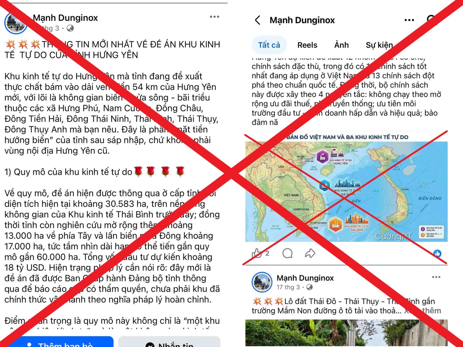 Theo đó, qua công tác rà soát, nắm tình hình trên không gian mạng, lực lượng Công an xã phát hiện: Vào ngày 17/3/2026, anh G.T.D sử dụng tài khoản Facebook cá nhân đăng tải bài viết với nội dung “Thông tin mới nhất về đề án khu kinh tế tự do của tỉnh Hưng Yên”. Nội dung bài viết đề cập đến các thông tin liên quan đến đề án khu kinh tế tự do của tỉnh, kèm theo hình ảnh minh họa có tiêu đề “Bản đồ Việt Nam và ba khu kinh tế tự do”. Tuy nhiên, trong hình ảnh bản đồ Việt Nam không thể hiện có hai quần đảo Trường Sa và Hoàng Sa thuộc chủ quyền thiêng liêng của đất nước Việt Nam.