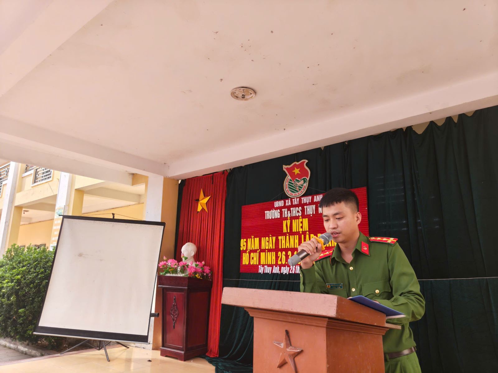 Nhân dịp kỷ niệm 95 năm Ngày thành lập Đoàn TNCS Hồ Chí Minh (26/3/1931 – 26/3/2026), Công an xã Tây Thụy Anh đã phối hợp với Trường Tiểu học và THCS Thụy Ninh tổ chức buổi tuyên truyền pháp luật về phòng, chống ma túy và tác hại của thuốc lá điện tử cho cán bộ, giáo viên và học sinh trong nhà trường.