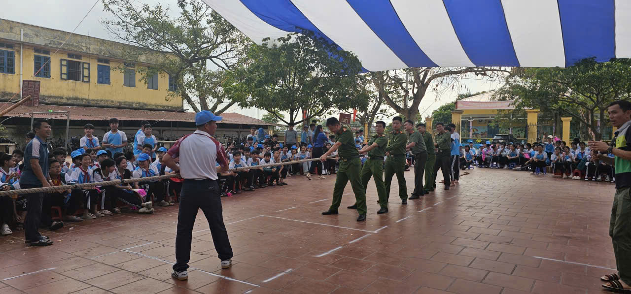 Sau chương trình tuyên truyền, Đoàn Thanh niên Công an xã Tây Thụy Anh đã tổ chức hoạt động giao lưu kéo co với các em học sinh. Hoạt động diễn ra sôi nổi, tạo không khí vui tươi, đoàn kết, góp phần thắt chặt mối quan hệ giữa lực lượng Công an với nhà trường và học sinh, đồng thời lan tỏa hình ảnh đẹp của người chiến sĩ Công an nhân dân gần gũi, thân thiện.