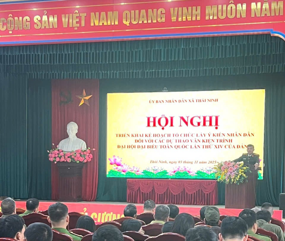 Chiều ngày 03/11/2025, UBND xã Thái Ninh tổ chức Hội nghị triển khai vận động, tham gia góp ý kiến vào dự thảo các văn kiện trình Đại hội đại biểu toàn quốc lần thứ XIV của Đảng qua ứng dụng VneID.