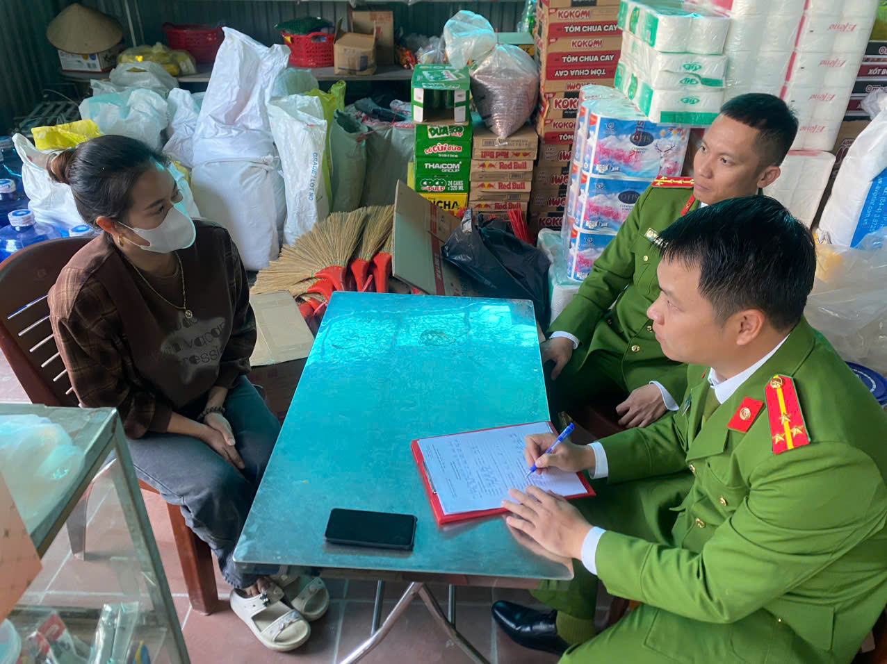 Công an xã Thần Khê, ký cam kết an toàn PCCC ở cơ sở kinh doanh.