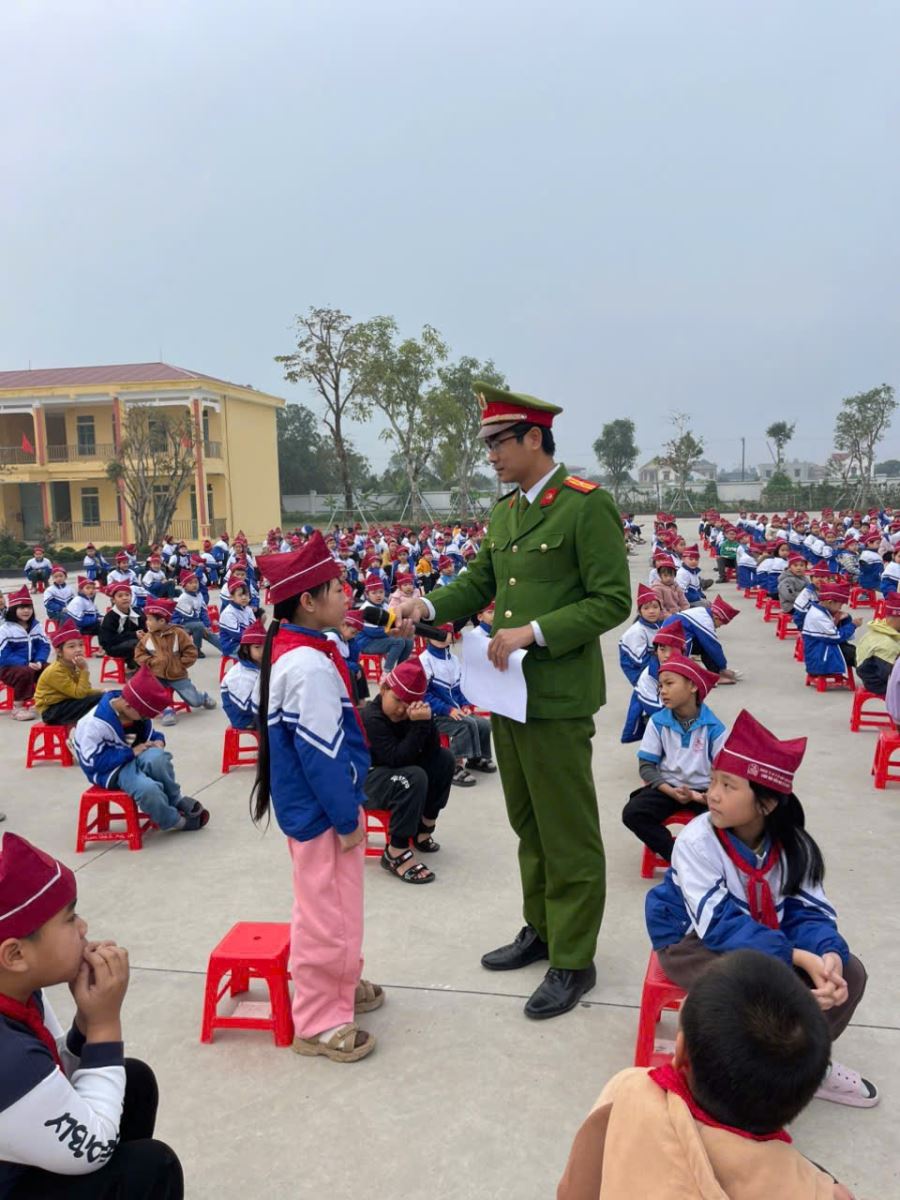 Công an xã Thần Khê tuyên truyền đối với học sinh trường Tiểu học Lê Tư Thành