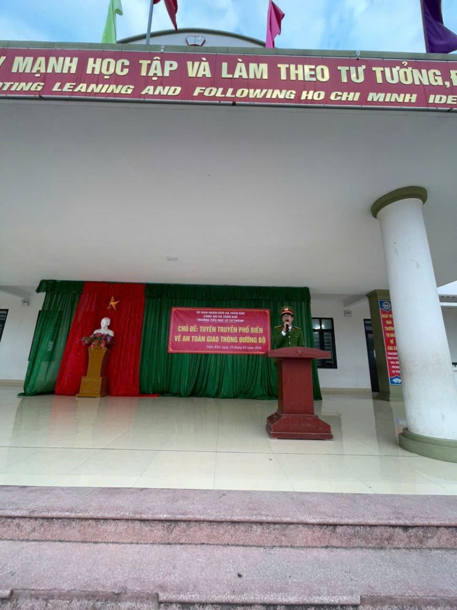 Nhằm nâng cao ý thức chấp hành pháp luật về trật tự an toàn giao thông cho học sinh, góp phần phòng ngừa tai nạn giao thông dịp trước, trong và sau Tết Nguyên đán Bính Ngọ 2026, ngày 29/01/2026, Công an xã Thần Khê đã phối hợp với Trường Tiểu học Lê Tư Thành tổ chức tuyên truyền, phổ biến pháp luật về an toàn giao thông cho 586 học sinh trong trường.
