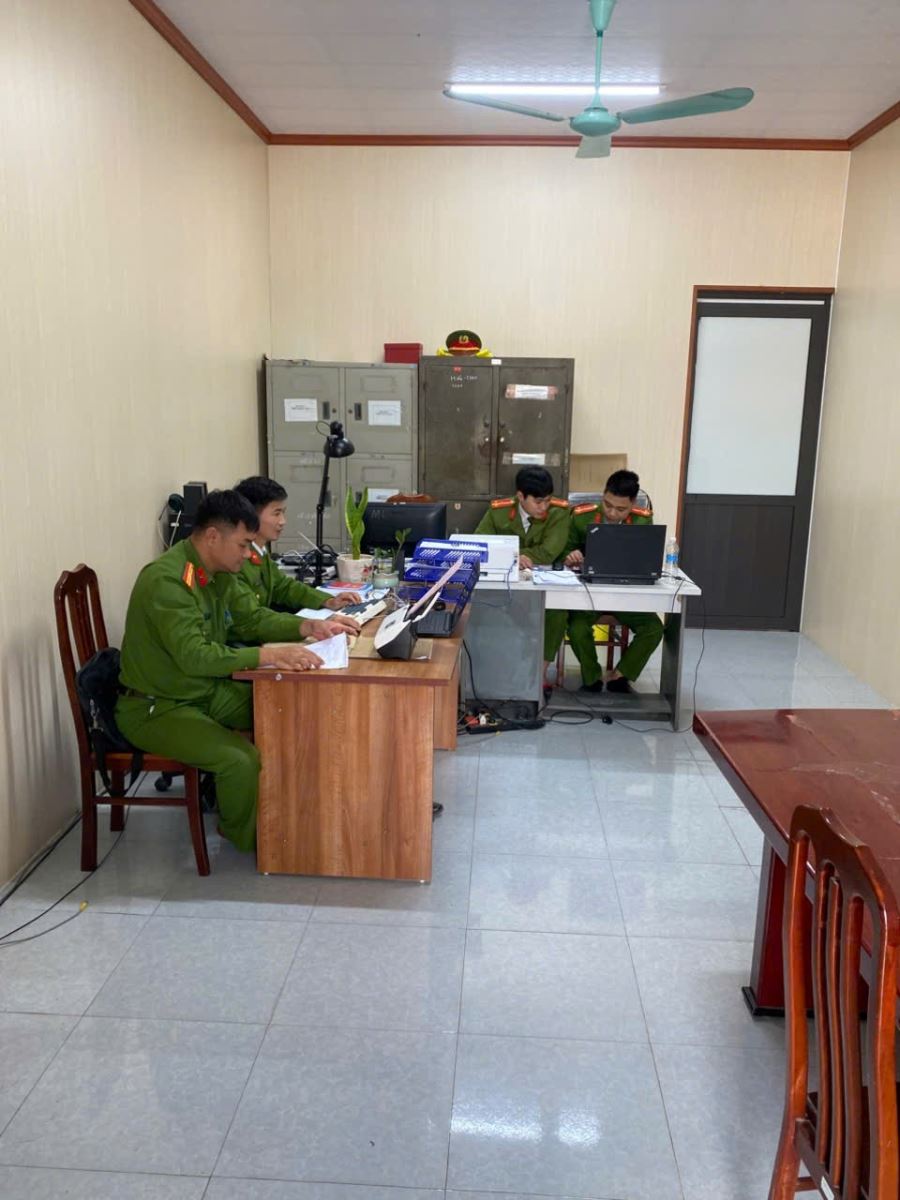 Tổ Cảnh sát trật tự Công an xã Thư Trì huy động toàn bộ cán bộ chiến sĩ tham gia làm sạch dữ liệu
