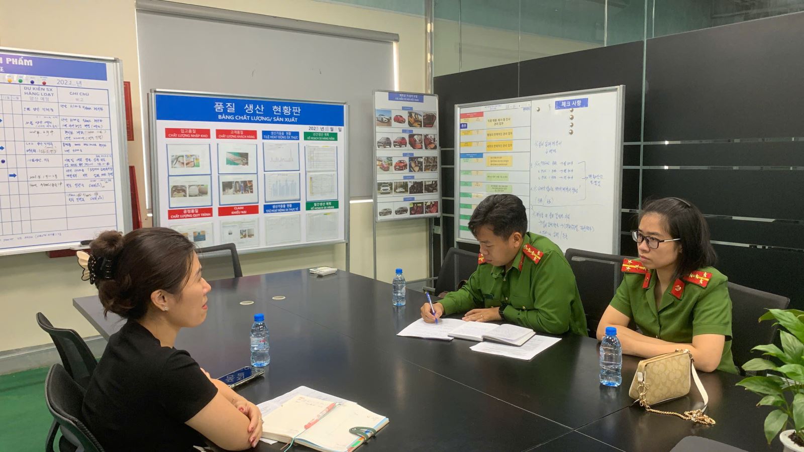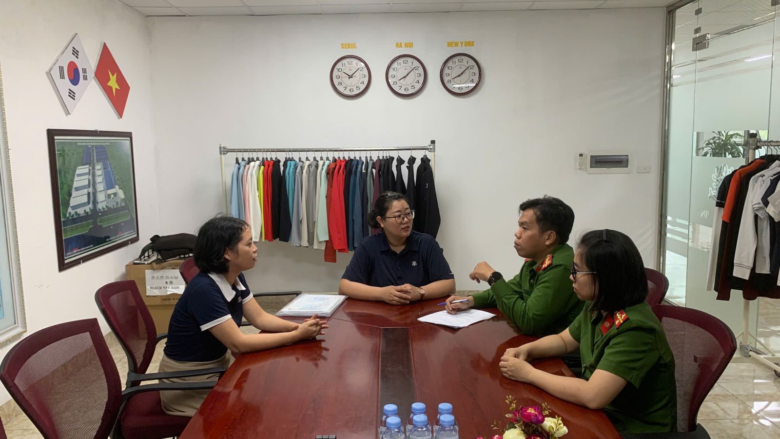 Công an xã Thư Vũ tuyên truyền tại công ty Jeil Jersey Vina; công ty DaeHwa Global và công ty K-Master