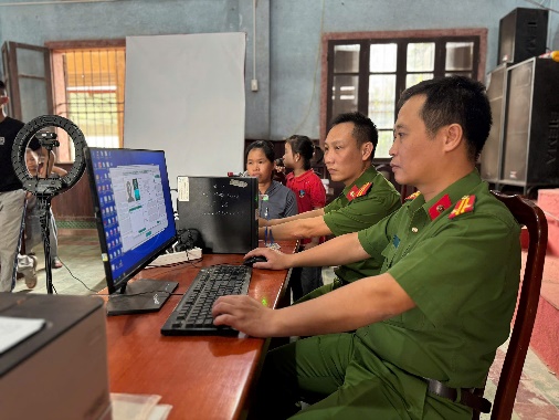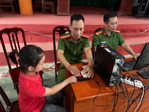 Công an xã thực hiện cấp tài khoản định danh điện tử mức độ 2 cho công dân từ 6 đến 14 tuổi