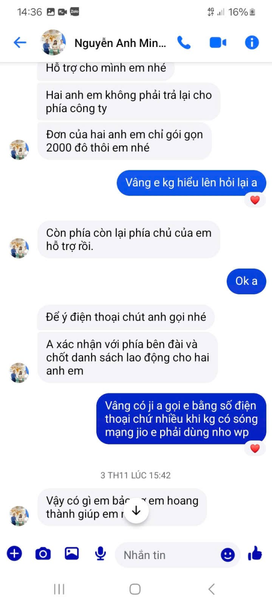Đối tượng yêu cầu anh Đ.V.L chuyển 2000 USD để làm thủ tục xuất khẩu lao động trọn gói