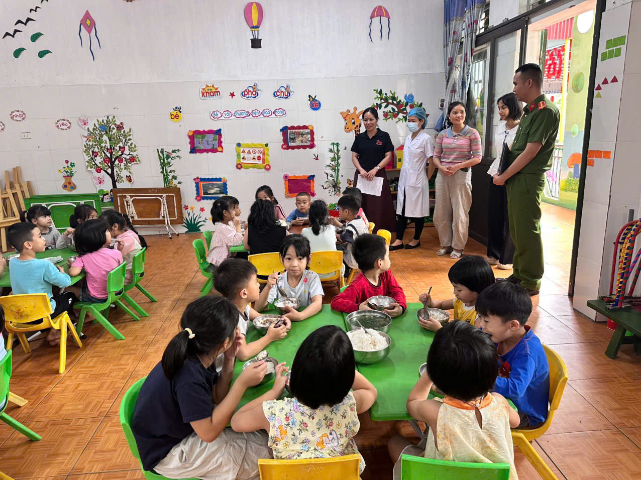 Đối với các trường học trên địa bàn, Công an xã đã phối hợp với phòng Văn hóa xã hội, Trạm y tế, Ban Giám hiệu các nhà trường tiến hành kiểm tra bếp ăn bán trú, tập trung vào điều kiện cơ sở vật chất, nguồn cung cấp thực phẩm, quy trình chế biến và lưu mẫu thức ăn. Đồng thời, tăng cường tuyên truyền, nâng cao nhận thức cho cán bộ, giáo viên, nhân viên và học sinh về công tác bảo đảm an toàn vệ sinh thực phẩm, phòng chống ngộ độc thực phẩm.