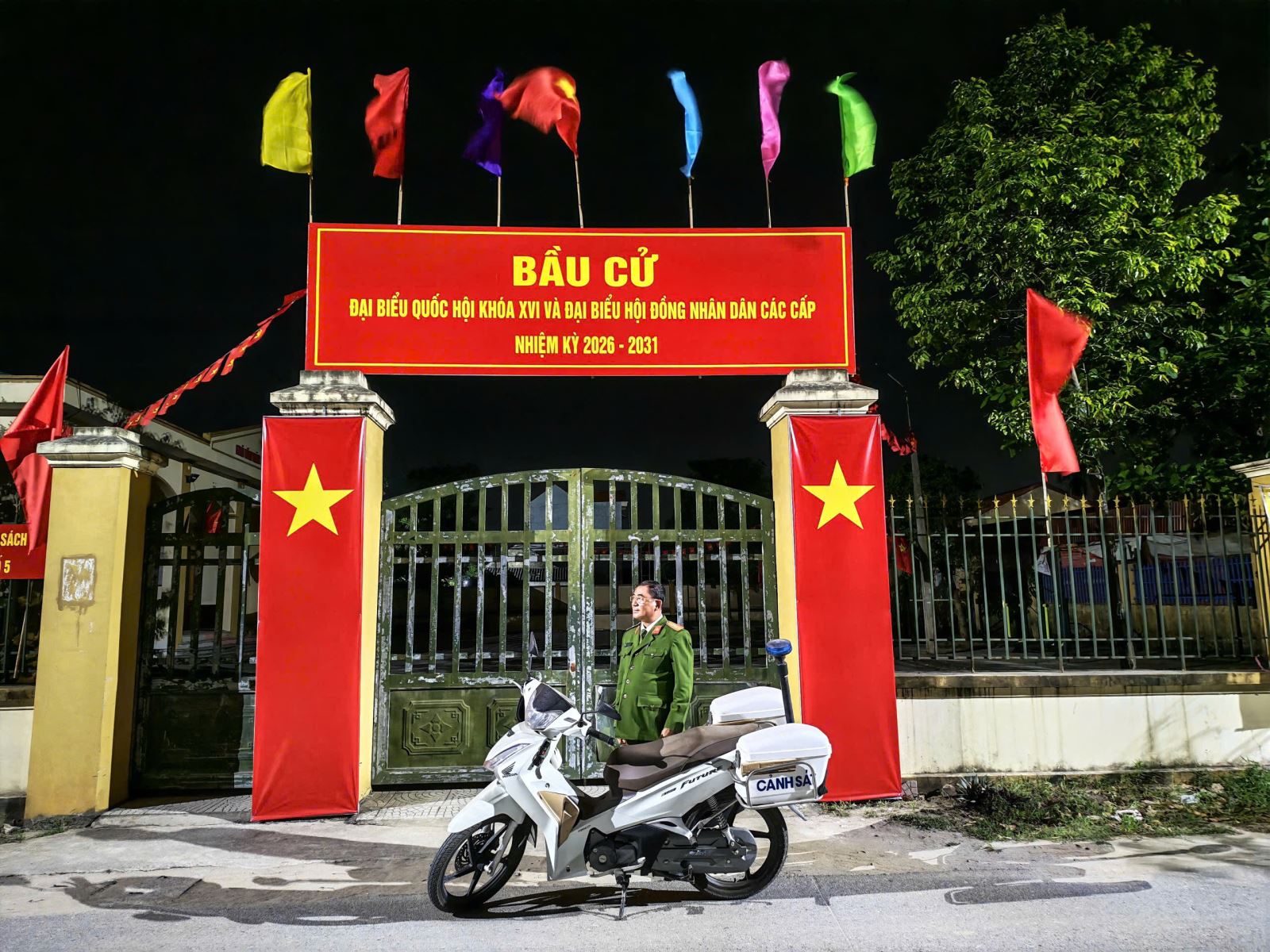 Tại 16 khu vực bỏ phiếu, Công an xã bố trí lực lượng ứng trực, tăng cường các hoạt động tuần tra và triển khai đồng bộ các biện pháp nghiệp vụ, hình thành các lớp bảo vệ nghiêm ngặt xung quanh nơi niêm yết danh sách cử tri, khu vực đặt hòm phiếu và nơi kiểm phiếu. Bên cạnh đó, các kế hoạch bảo vệ tuyệt đối an toàn cho các đoàn lãnh đạo cấp trên về tham dự, chỉ đạo tại địa phương cũng được xây dựng chi tiết đến từng vị trí chốt chặn, đảm bảo sự trang trọng và an toàn thông suốt.