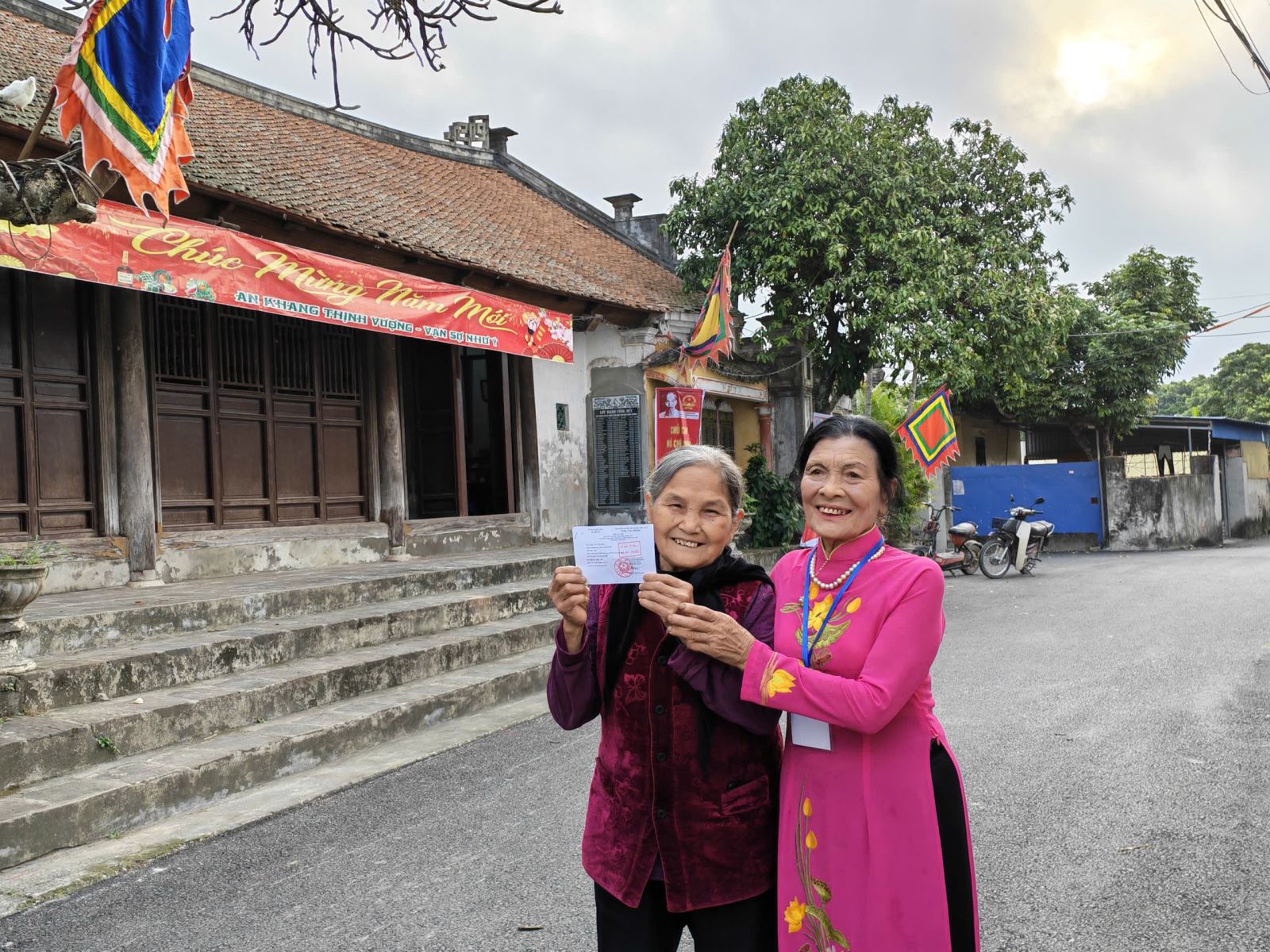 Bà con nhân dân tại khu vực bầu cử số 11 phấn khởi trao gửi niềm tin vào những lá phiếu
